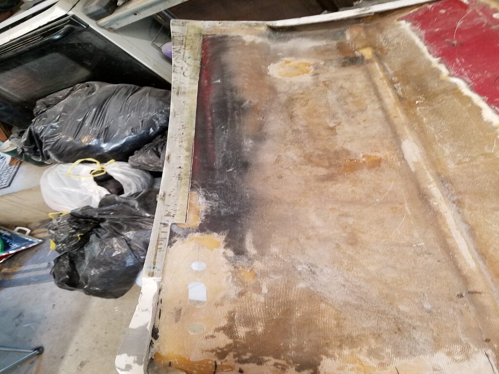 Turns out the top portion/edge of the door is more gel coat than fiber glass. When I glue the blockoff panel in, I filled this hole with SMC adhesive. So far, it looks good.