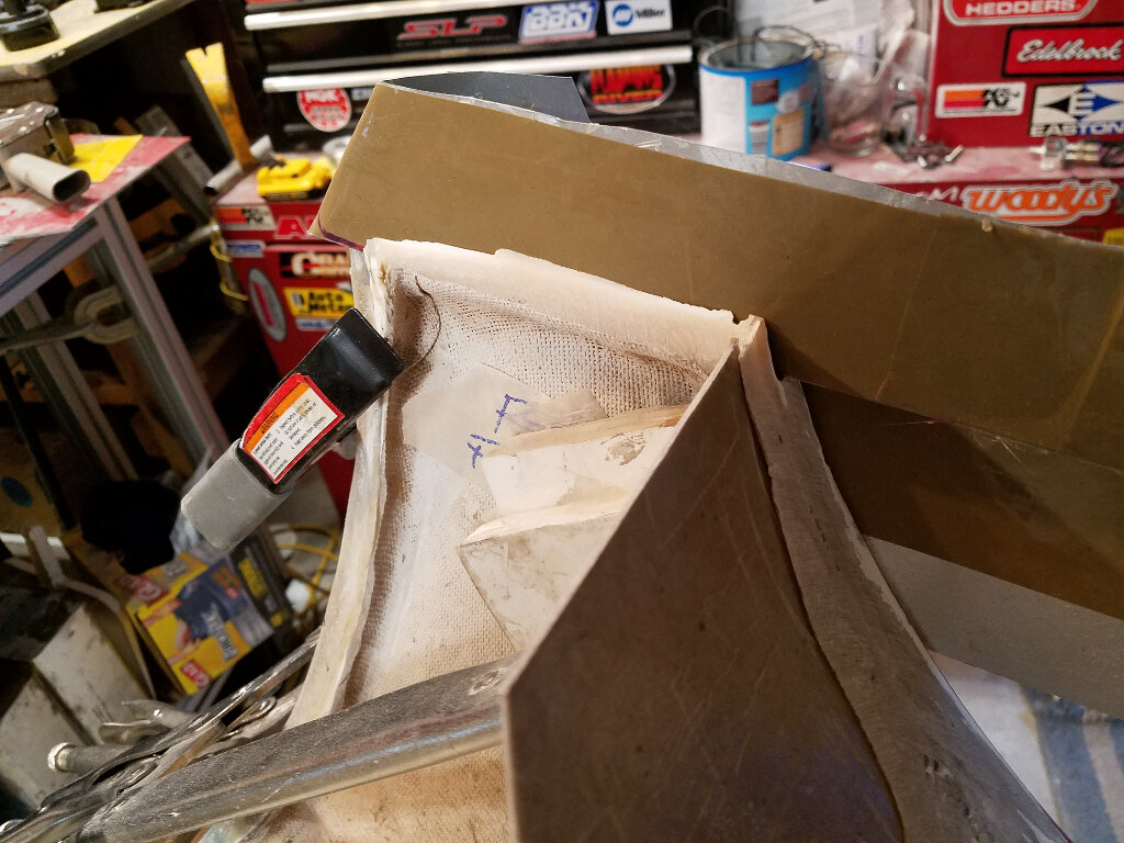 Then I tried to make a blockoff plate between the top of the panel and the Fiero door. It didn't work well, but here's a pic.