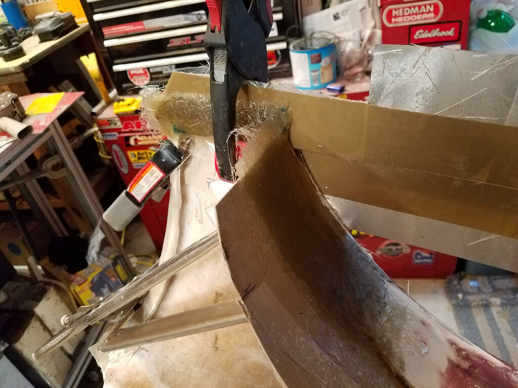 Then I added the flange template I made a while back to create the flange between the panels. It too is covered in packing tape.