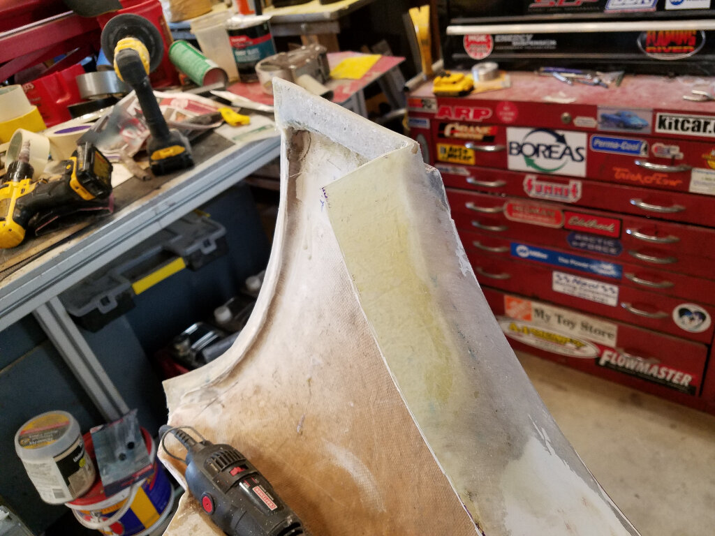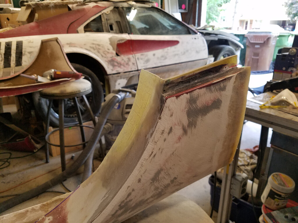 This picture show the area ground down and ready for the facelift. The flare had to be added first.
