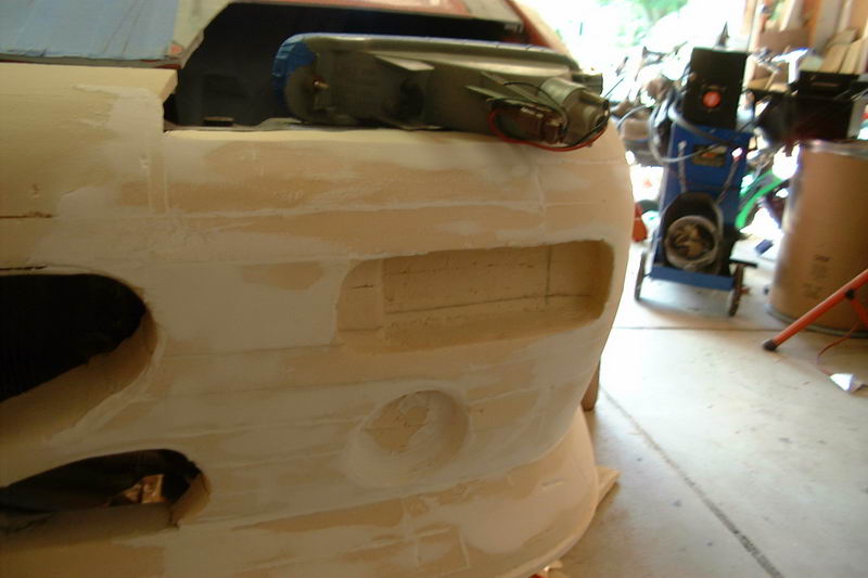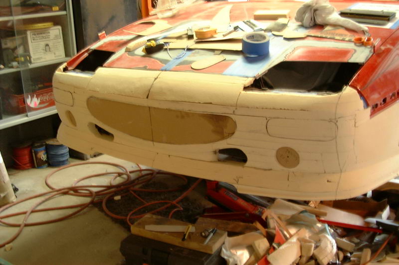 The plan at this moment is to take a mold off the nose once complete and make a fiberglass piece. Then re-fashion the bumper to make it all fit back together.