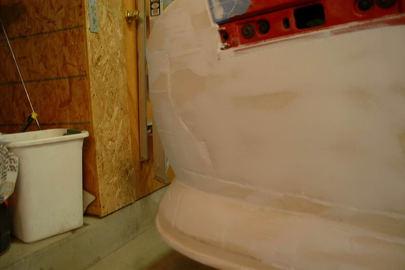 I'm going to use drywall compound (mud) to finalize the shape and smooth everything out. Here is my first attampt, starting only with a portion of the driver side.