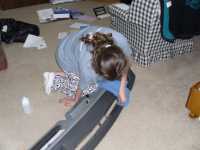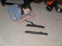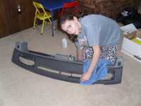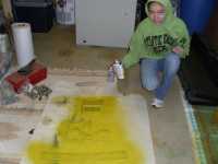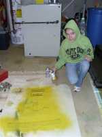 One of the mnost difficult things in getting Kathryn to do and to understand has been, of all things, painting. Now before everyone things that we are recreating the works of the Masters here, or that we are even talking about running complex airguns......nope, just rattlecanning some of the interior parts. We seem to be getting either to close and it runs, or two far away and nothing gets done except to change the color of the old carpet we have down to catch the overspray........or we move the can to fast, or not fast enough. Well you know what they say, practice makes perfect, so she has gotten her fair share of sanding as well :-)