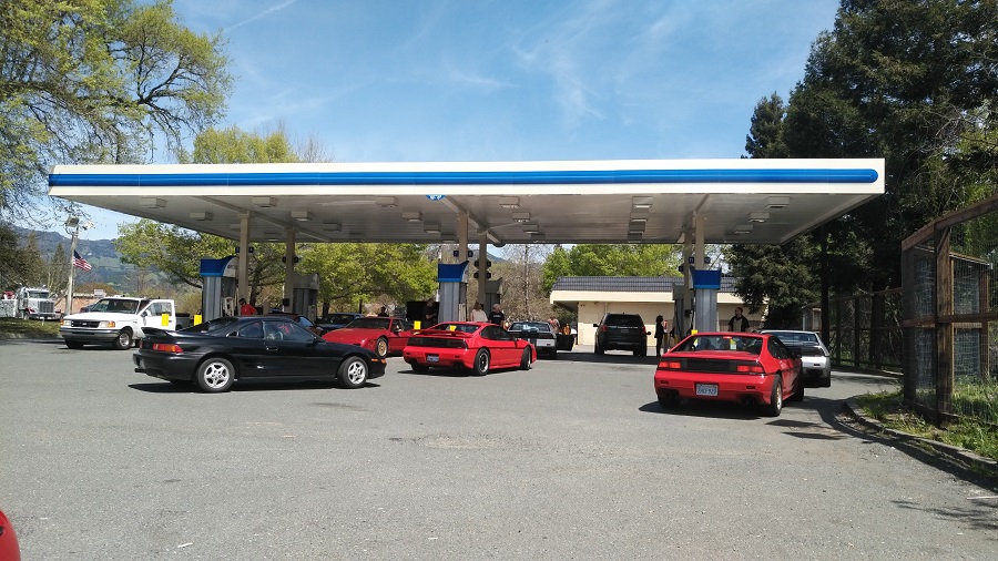 Stopping for gas at Arco in Calistoga. We had some people taking pictures and video as we headed out of the gas station.