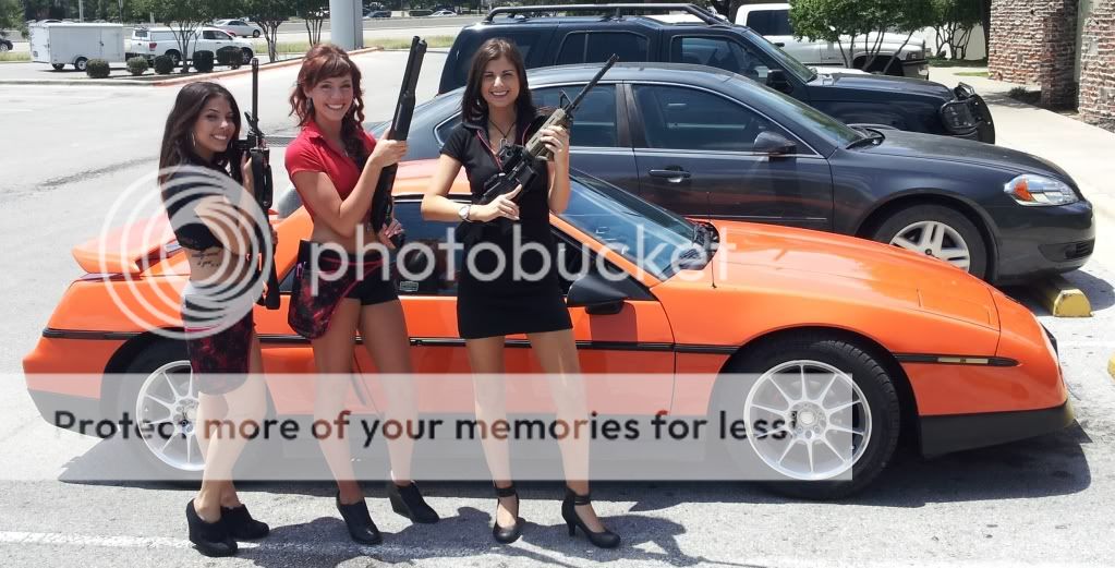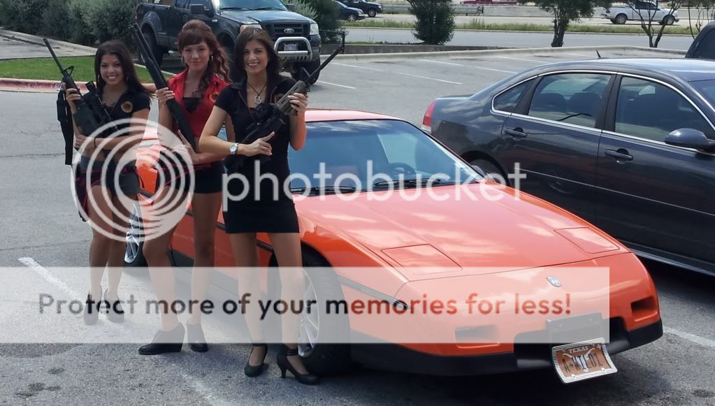 We had a a few members meet at a shooting range today and had lunch there. I asked our server if she would pose for a picture with the Fiero and an AR-15. A few more wanted to join in with here and luckily we had a few more weapons for them to pose with.