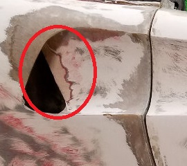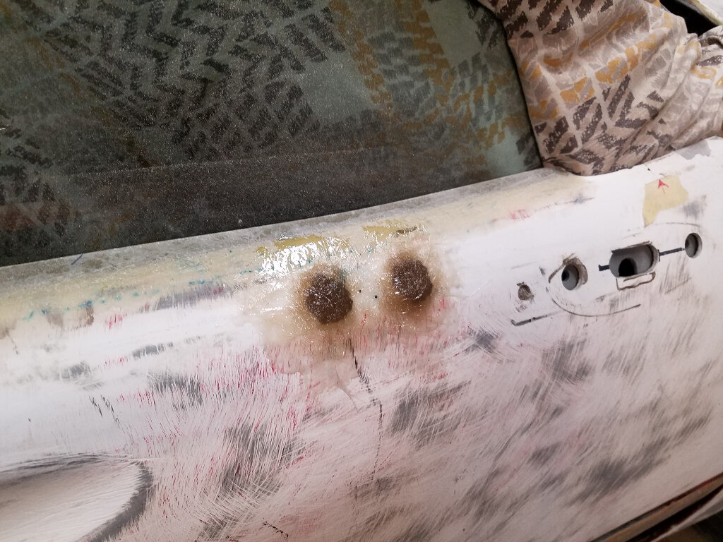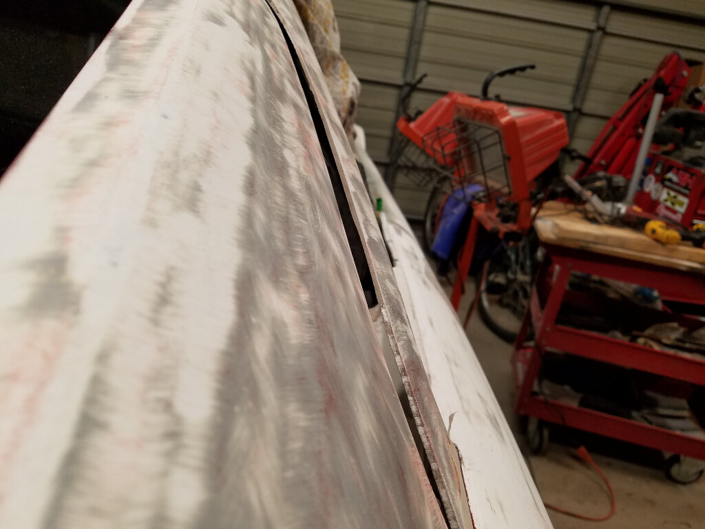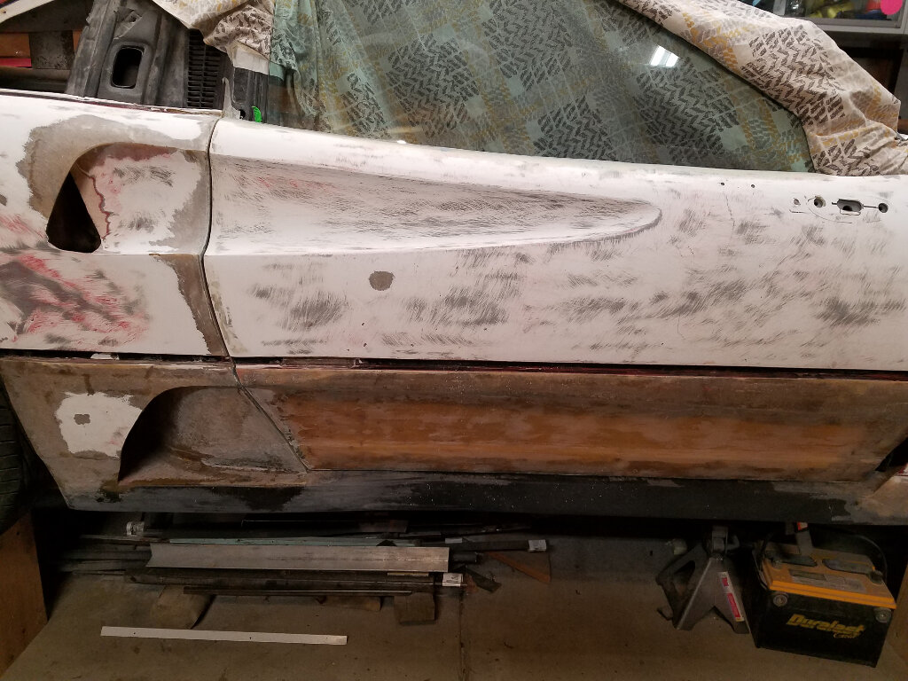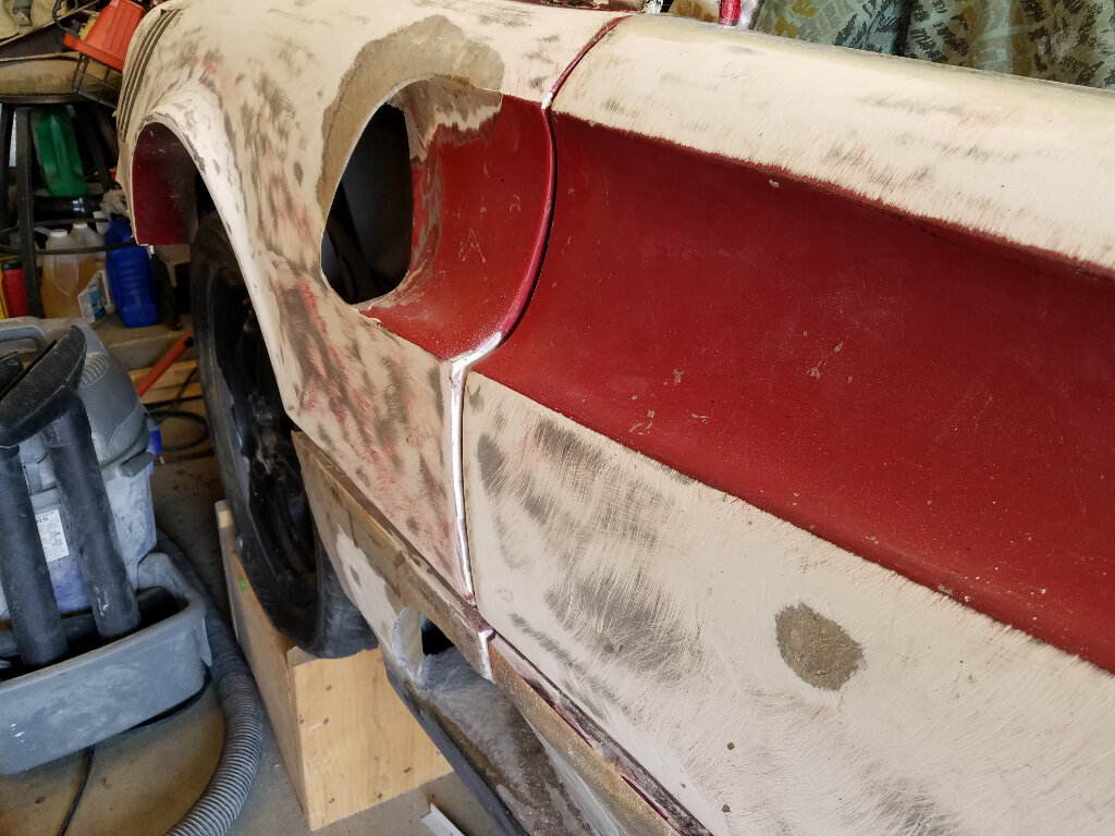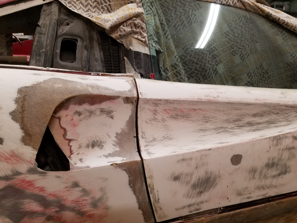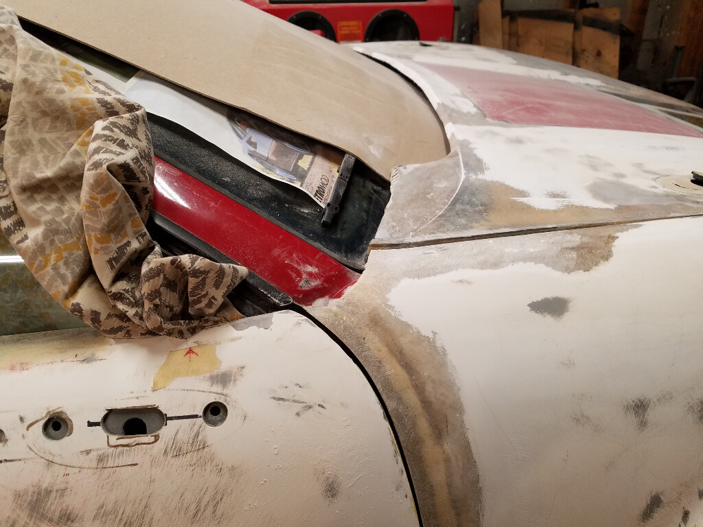 Fun part of removing paint is finding out what's underneath. The pink area at the edge is all bondo. More to replace.