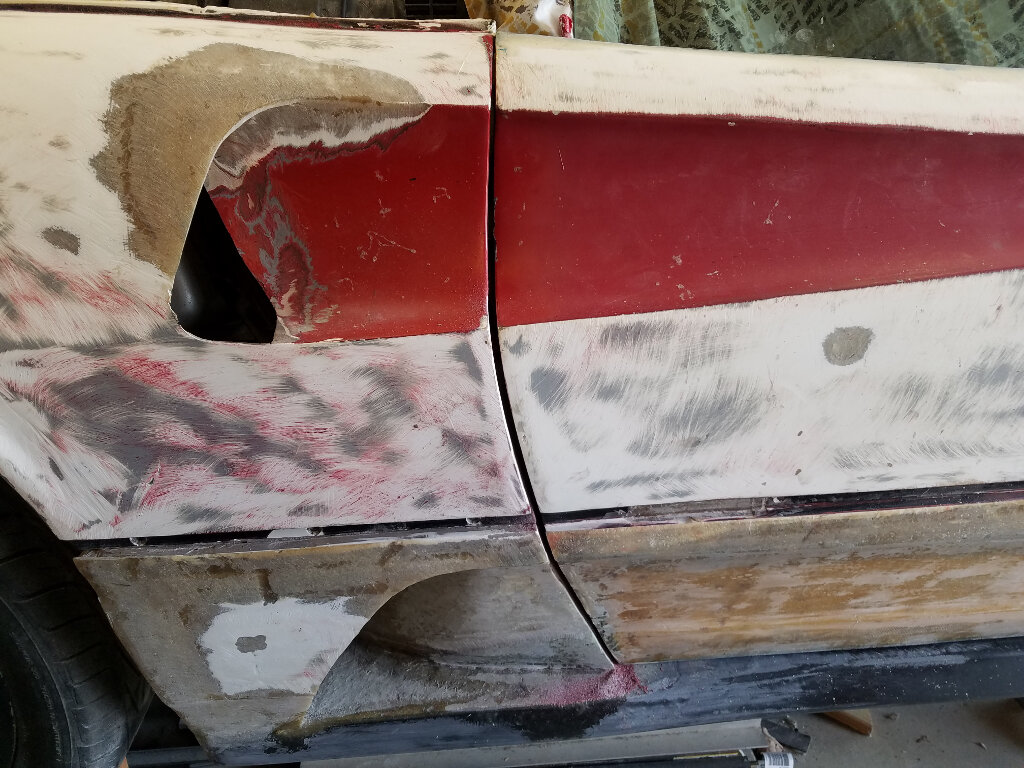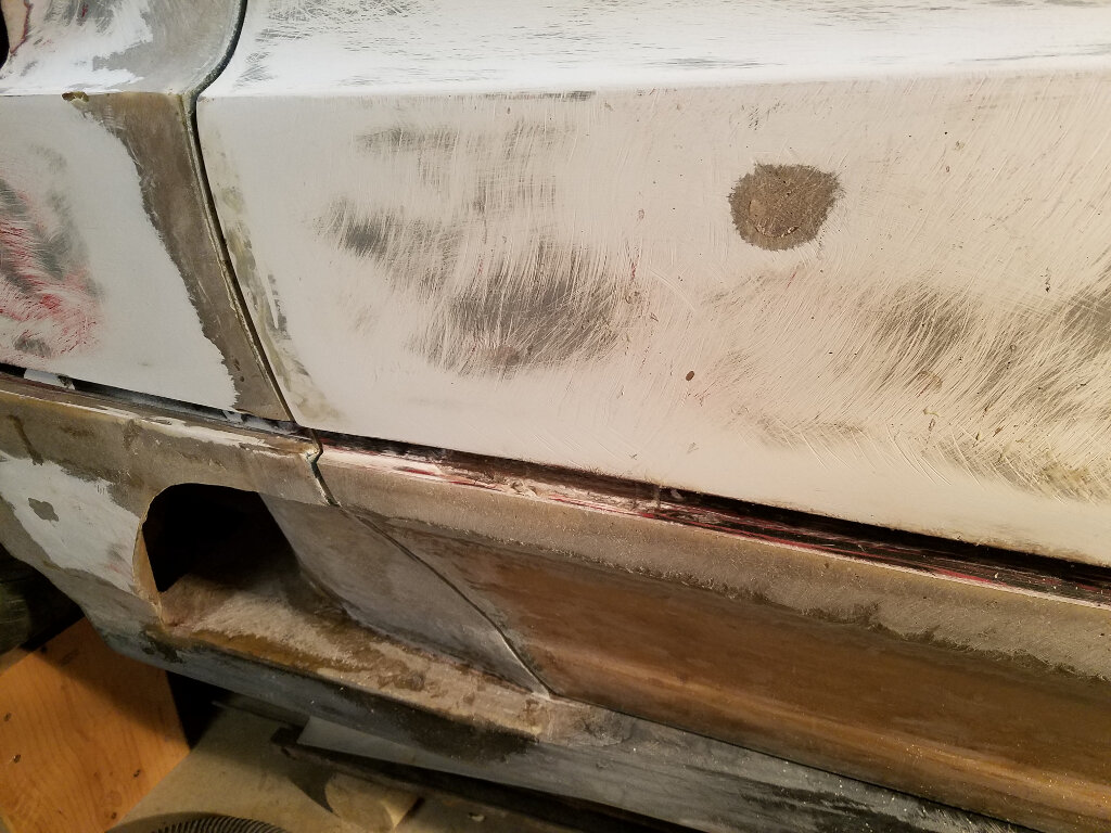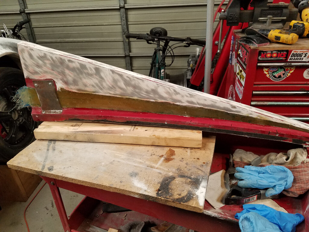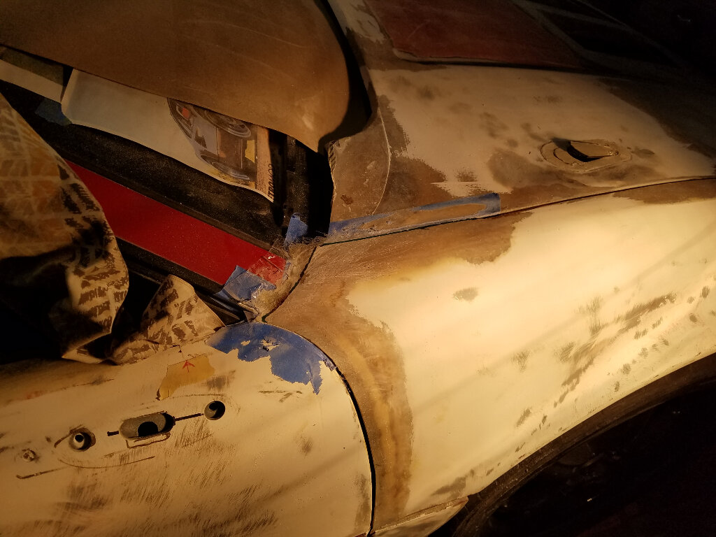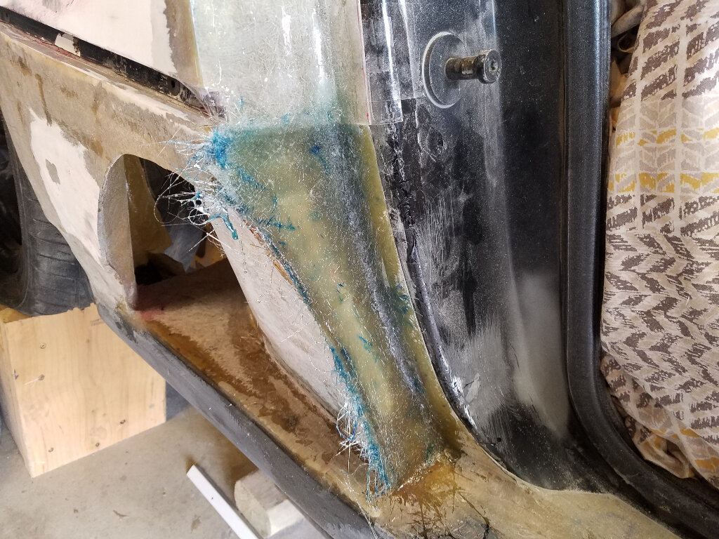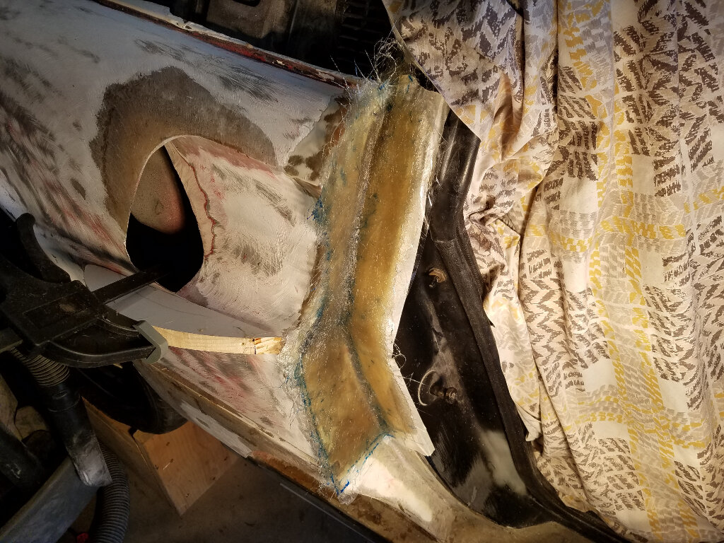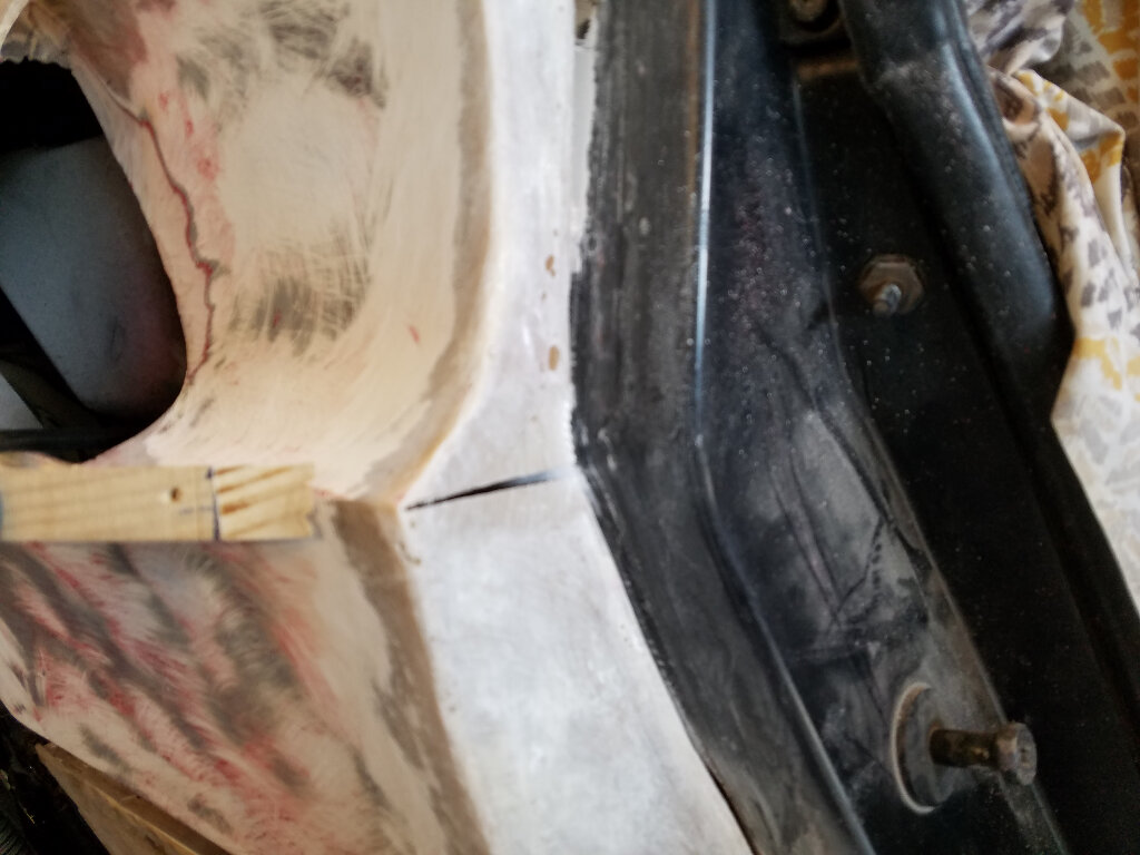 Apparently I didn't take a pic of it together On either side... First off, I ground the joint down about 1/2 to 2/3 through, tapering it back about an inch. Then I applied 3 to 4 layers of glass. Then I repeated everything on the driver side.
