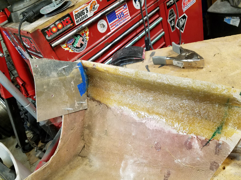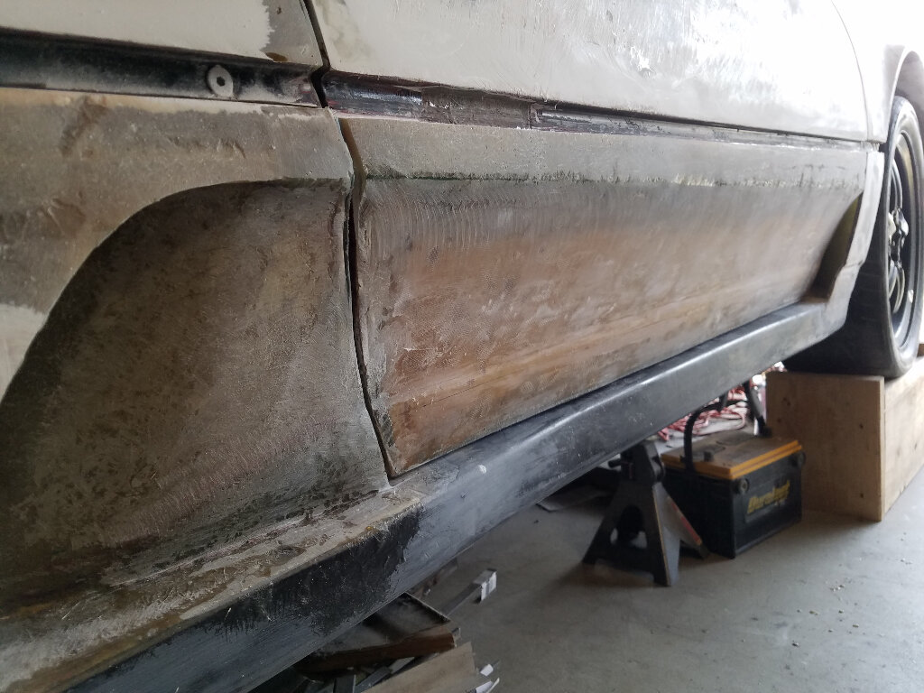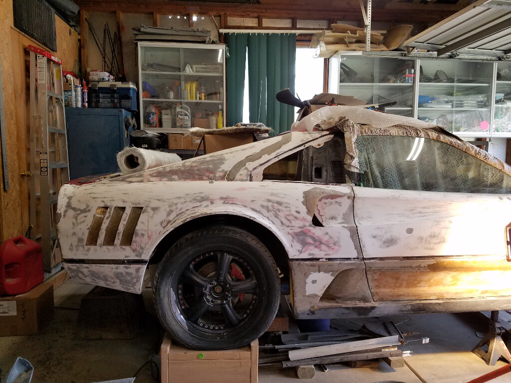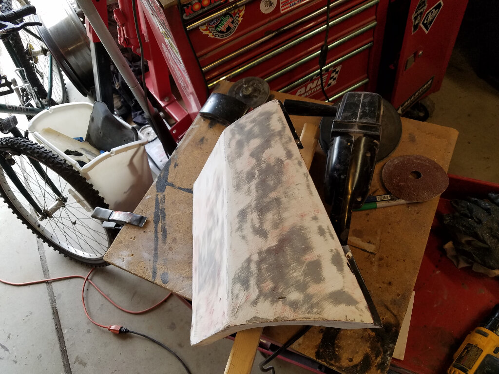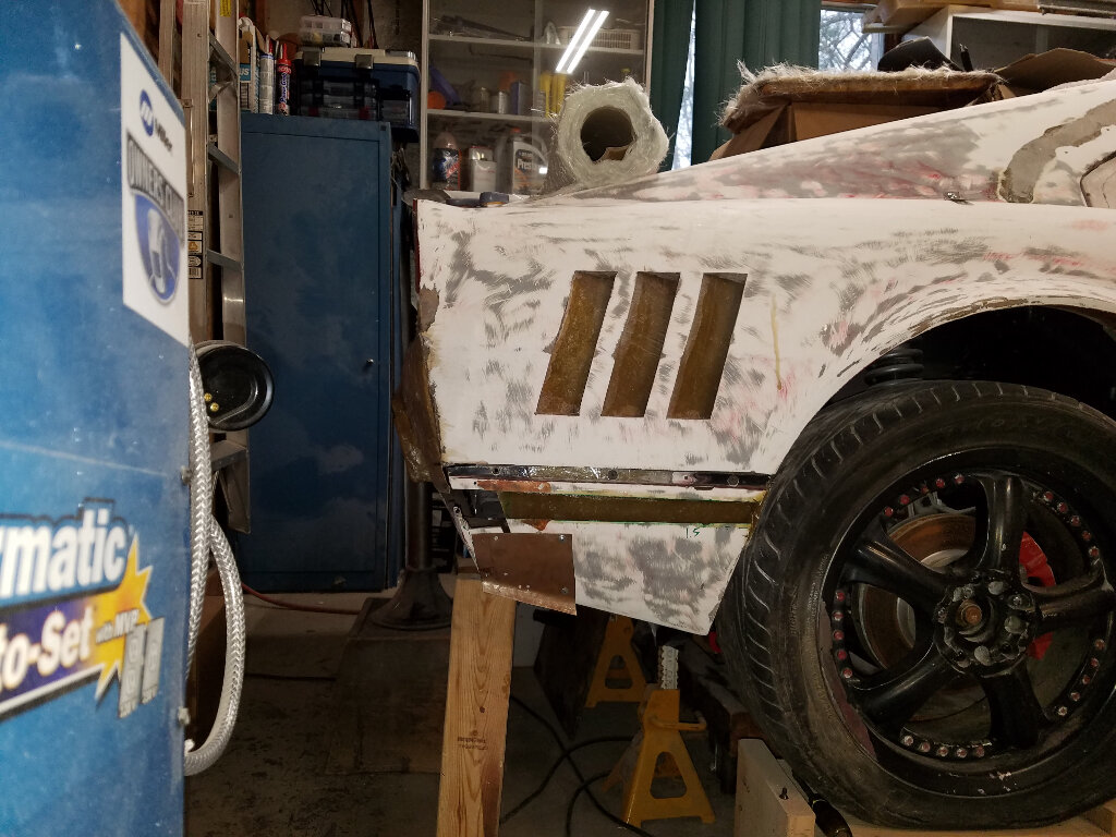 Pretty much where I'm at right now (as I sit in the AC). I've finished shaping the nose to fender transition and have been filling the top panel and grill openings.