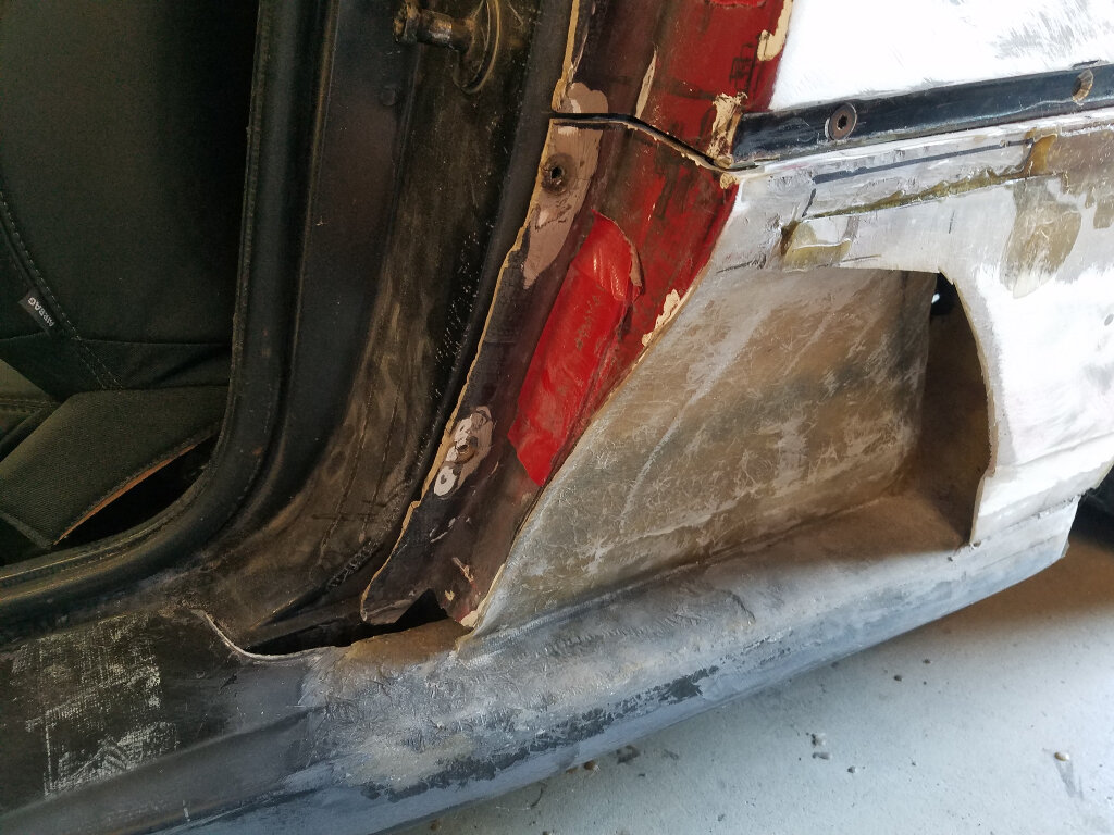 First up, the rocker panel. It needs to be fitted to the frame, and the vent needs to be redone so that it matches the other side.