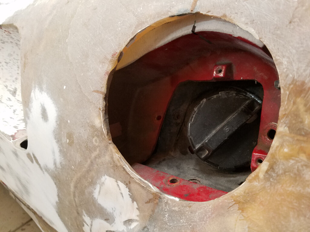 Here's the mess on the rocker. Need to redo the flange to frame and finish the hole in the bottom.