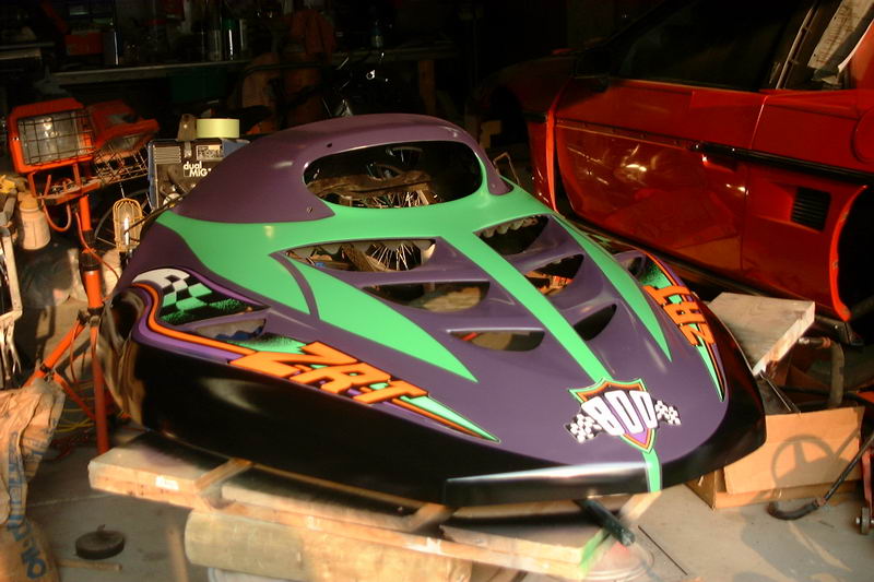 No update on the new front...I've been practicing on a snowmobile hood for my Dad.