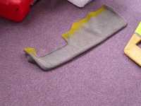 With the bezels and vents reassembled we had some time to go back and work on the carpeting for the door. We managed to test fit the carpet and get it to lay smooth after cleaning off all of the old glue.