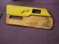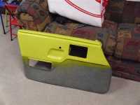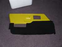 Once that was done we needed to move on to another project. So we moved back to the drivers side door. We got some free black carpet the other day so this was a good time to think about the lower door panels. Kathryn had previously dyed the tops to match her other yellow components. So now it was time to work on the bottoms.