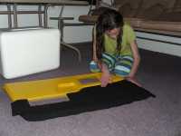 And then on to the project that took the remainder of the evening for her. As you will remember when we last left it, Kathryn had stripped the door carpet from the driverside. So that mean that we were ready to build her template, and cut out her new replacement carpet. Unfortunately, I had to be out at a meeting so we didn't get any photos of the work in process, but we did get what she ended up with.