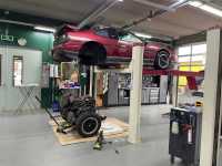 NIce garage! And the car is secured to the hoist - helps boost confidence that it's a trustworthy operation.