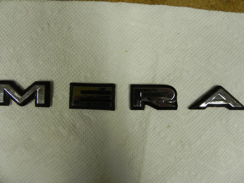 Well, I finally stayed home long enough to finish up a minor project. I just completed restoration of my last set of original MERA rear deck lid letters. They are not perfect but they do not look bad. This is the fourth set that I have finished and all were decent to good after the work was completed. Note that the E does not photograph well since there is so much black showing.