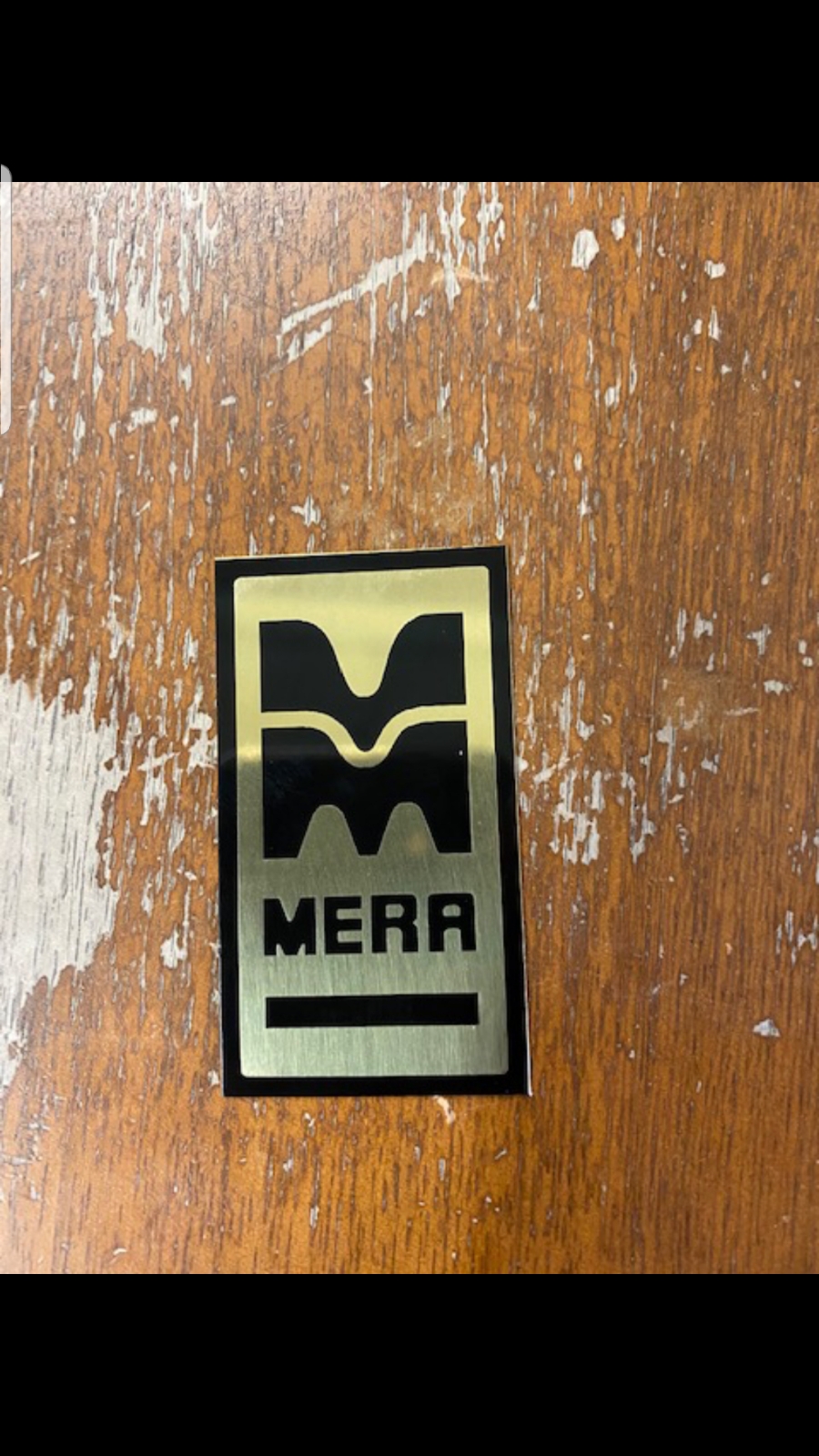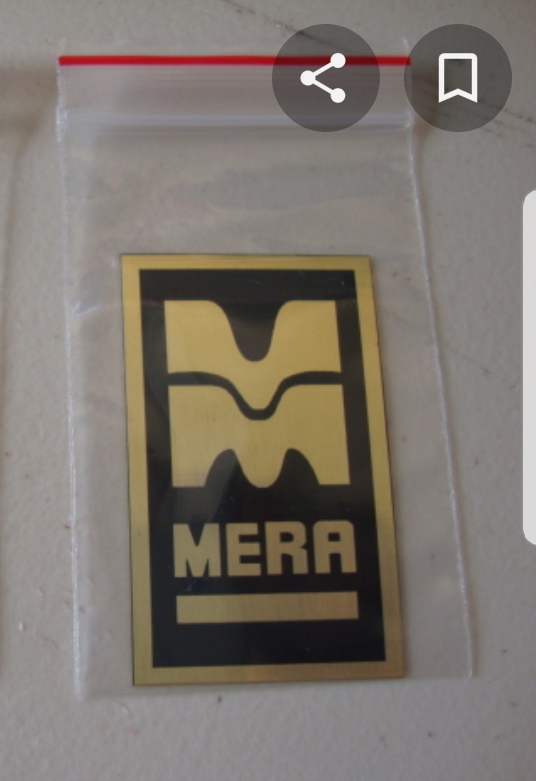 Nelson that was me. Since i just acquired a real mera ( after 10 year search ) i have MERA fever. So I took the advise of " a real mera in paradise " and found a trophy shop with laser engraving that was able to make them for me. I still think johnnyrottins badge is by far the best due to the raised font and textured back. But these are actual emblems and since i already paid for the design he can remake them pretty cheap if anyone needs some.