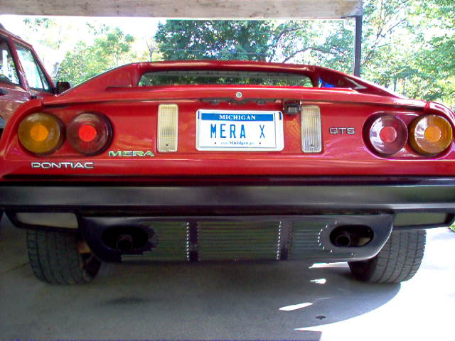 I like the idea of Mera badges on a Mera body. It looks authentic that way. Why put Ferrari badges on it if it isn't a Ferrari? If a Ferrari dealer spots this the companys lawyers will be hot on your tail and many car folks know what a real Ferrrari looks like anyway so who are we fooling? . ------------------ " THE BLACK PARALYZER" -87GT 3800SC Series III engine, 3.4" Pulley, N* TB, LS1 MAF, Flotech Exhaust Autolite 104's Custom CAI 4T65eHD w. custom axles, HP Tuners VCM Suite. "THE COLUSSUS" 87GT - ALL OUT 3.4L Turbocharged engine, Garrett Hybrid Turbo, MSD ign., modified TH125H " ON THE LOOSE WITHOUT THE JUICE "