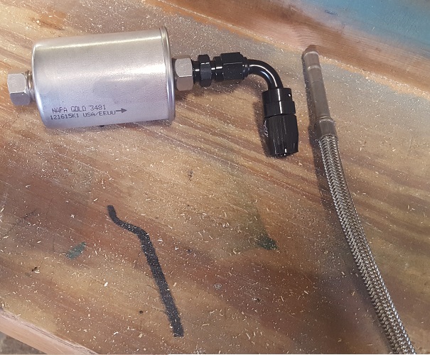 Sorta random but If I don't post now I will forget. This is the AN adapter for the stock fuel filter to stainless steel lines I am using.