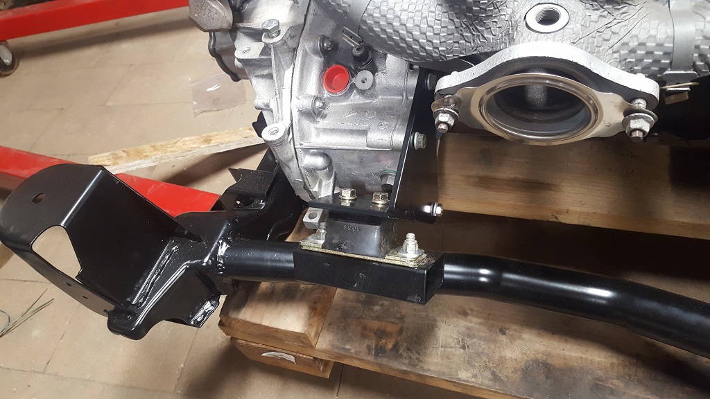 Here is the rear trans mount. We drilled and tapped the three spots on the F23.