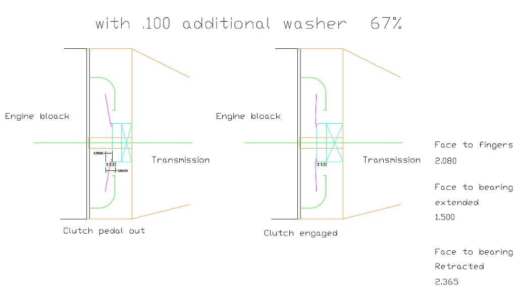 I see that I had a few things backwards. I also think I didn't measure something right after looking at it more. So I decided to get it drawn up in CAD and then be able to really check myself. I remember that i was going to us a 1/4" trans spacer based on the face that most people machine down the flywheel 1/4" to get clearance with the pressure plate and the trans case. Those same people seemed to unusually needed a 1/4" HTOB spacer. Now, after throwing out all old measurements and starting fresh. I think I need 1/4" trans spacer, 1/4" HTOB spacer. Don't mind the misspelling....