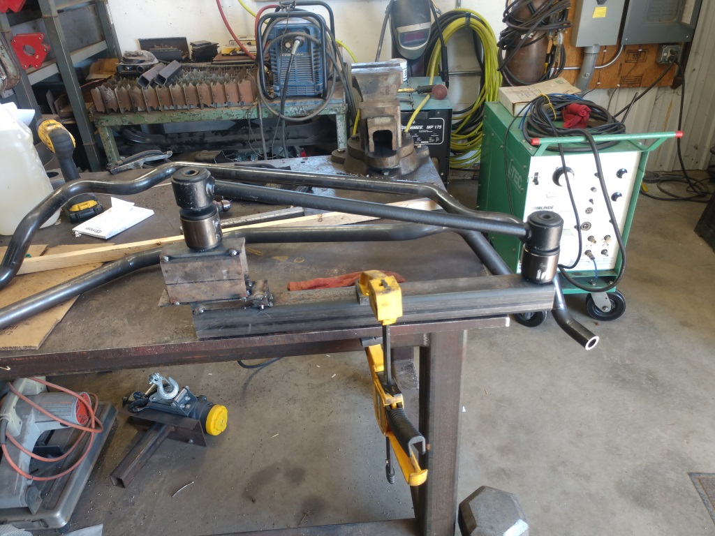 The rear wheels were too wide to clear the rear suspension bar (i cant remember the name...) So my dad grabbed a few scrap sway bars from the dumpster and i made new ones that will clear.