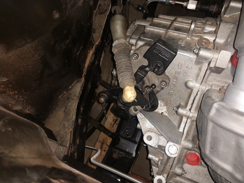 I started making a bracket for the shift and select cables. Here is the relocation of the select ball.