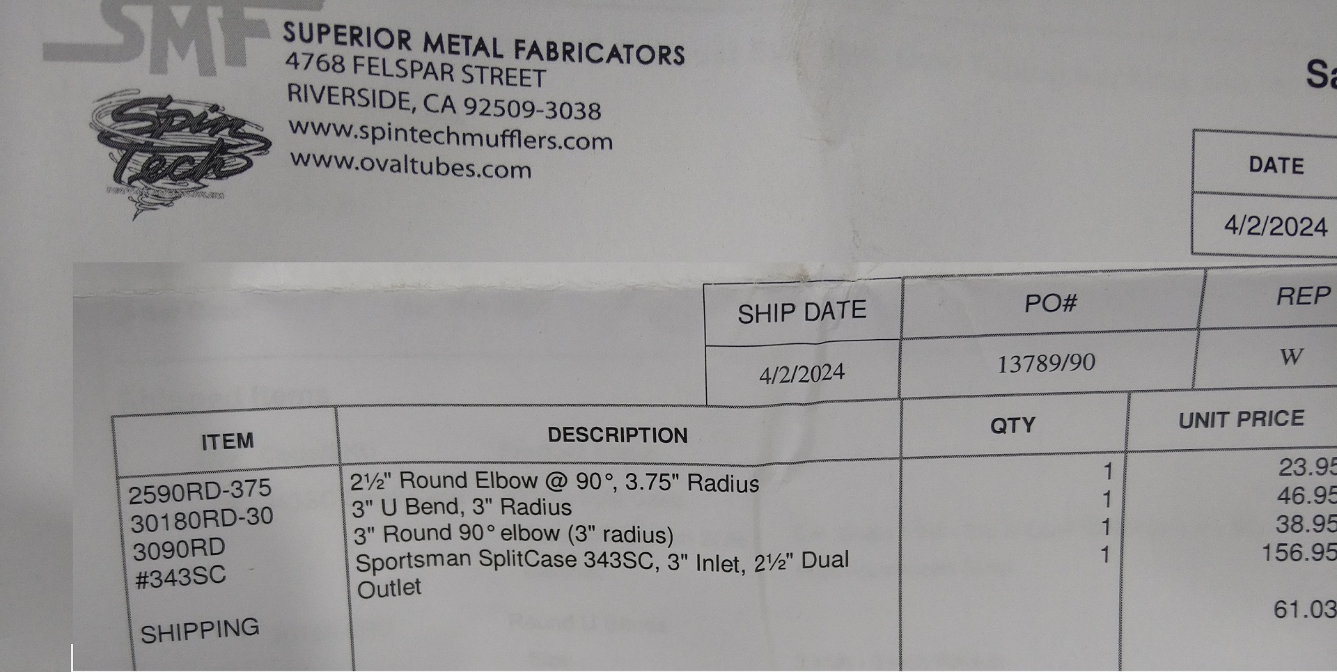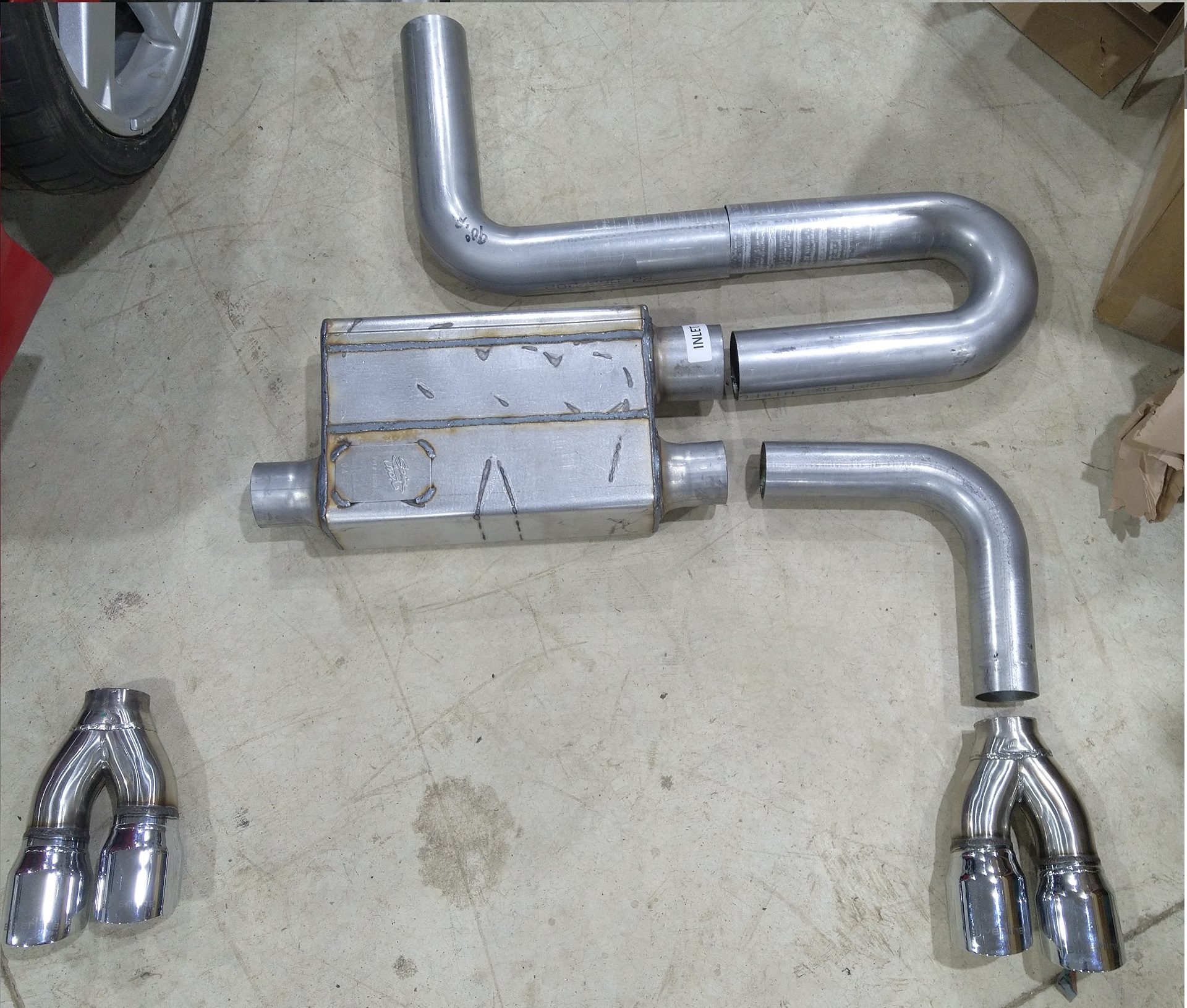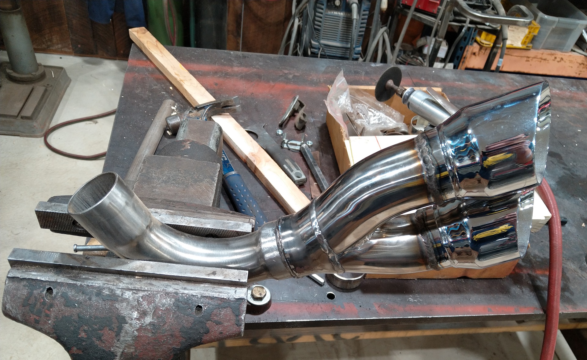 I am doing 3" into muffiler and dual 2.5" to splitters. The stainless tips are 2.25, so I am cutting off the 90 degree bends.