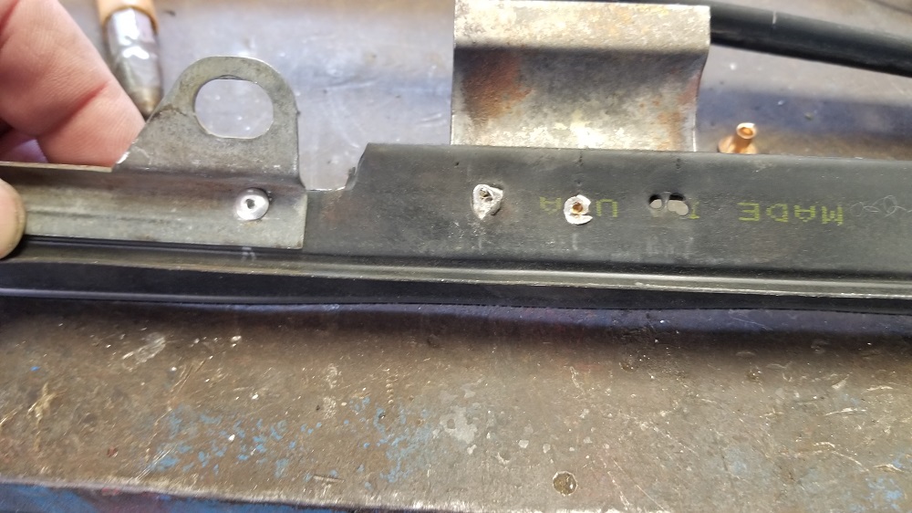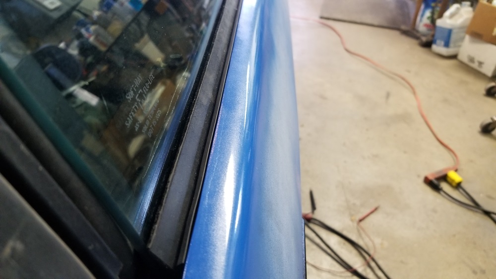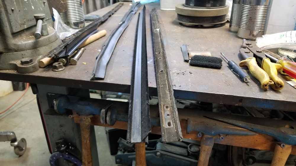 I spent a couple hours in the shop today trying to get the passenger side dew wipe to fit up over the door skin. I carefully checked it with the OE wipe and confirmed that I drilled the holes 1/16 to 1/8 of an inch too high. I also noticed that the OE wipe is cupped along the length, with the concave part facing the door skin.