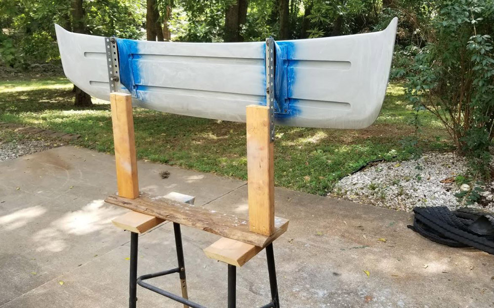 The last part to be primed and sanded is the wing. I didn't realize how big the wing is until I tried to sand and prime it. I came up with this mount to hold it. Anyone else have a better idea?