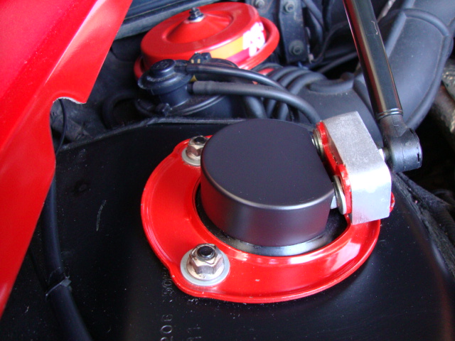 By cutting off a small portion of the curve, the cap is able to expand slightly and fit on that small lip very tightly. And I had to cut a piece off to clear that bracket anyways. I doubt that it would have fit if I didn't cut a small portion off. Just to ensure it doesn't pop off, I put a small bead of silicon sealant on the inside while I installed it. There is about 1/4" clearance of that center strut bolt, so it "shouldn't" pop off. (LOL...famous last words). But since this is just a prototype, I'll let the silicon dry and do some driving along some curvy sections in East Oahu to see if the dang thing stays on. I only did the driver's side for now, to see how it holds up.