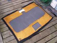 Perhaps the one piece that has taken a significant amount of time was the recovering of the map pocket. Kathryn resewed the Fiero emblem to the new yellow material at least 3 times before we got it right with some help from Mom. Then we needed to get it on the map pocket frame. The results however look pretty good I think.
