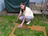 First of course you have to clean off all the old foam backing etc. Kathryn still can't believe how much "grunge" accumulates in 25 years.....lol! But she likes the reward of seeing all the nice bright, shiny, and nice restored pieces.