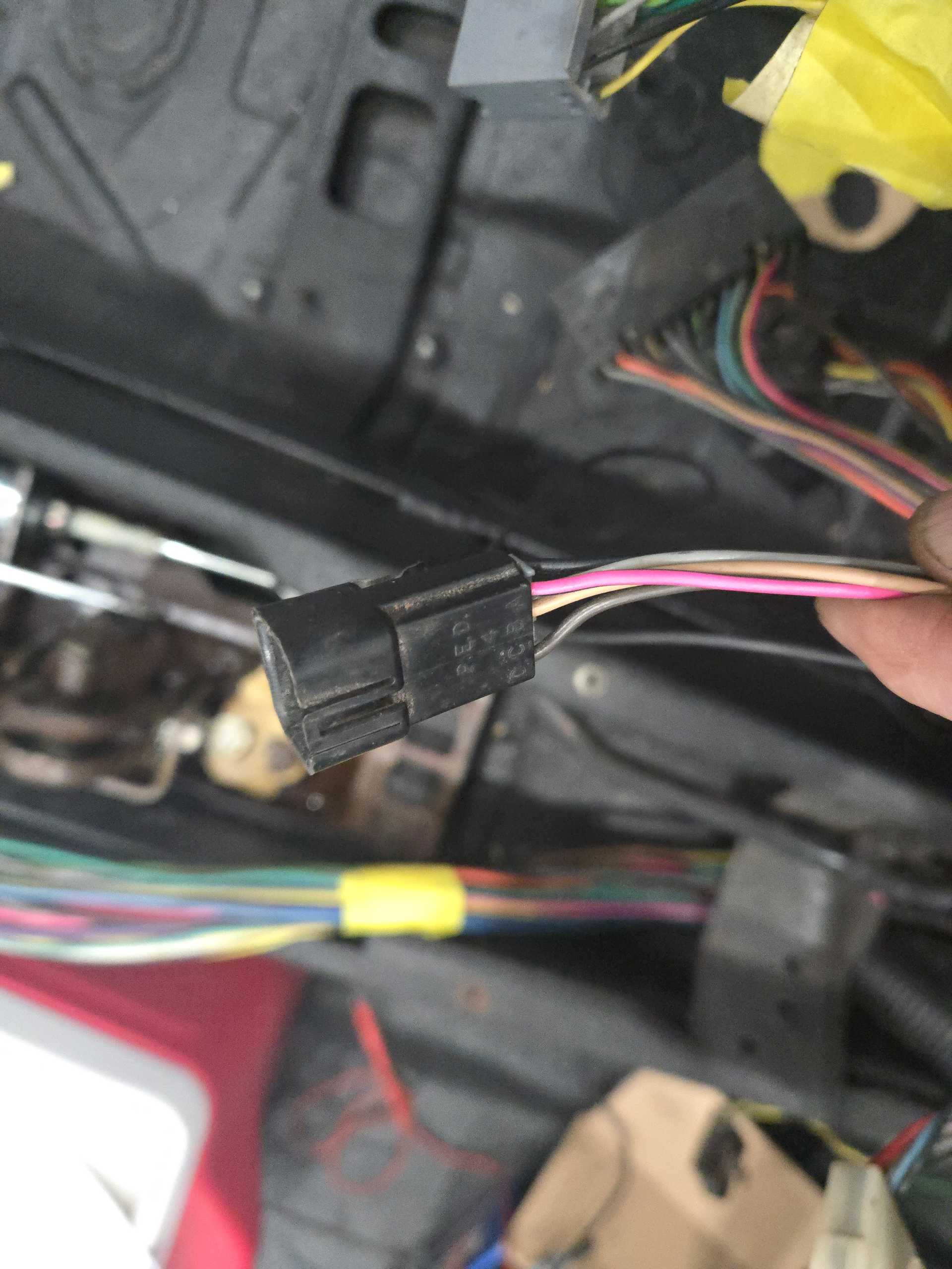 The black connector located behind the center console, often accessed near the driver's side footwell or lower A-pillar area. It interfaces the engine harness with the interior dashboard wiring. Wire Function Breakdown (Fiero Factory Colors) The specific colors you identified typically correspond to these functions in the driver-side interior harness: Black: Generally used for chassis ground. Red: Constant 12V battery power (unswitched). White: Typically for interior dome lights (ground-side trigger) or the tachometer signal. Tan: Often associated with the oil pressure gauge or warning lamp. Orange: Constant 12V power for interior lights (fused) or dash illumination.[This message has been edited by CoolBlue87GT (edited 12-18-2025).]