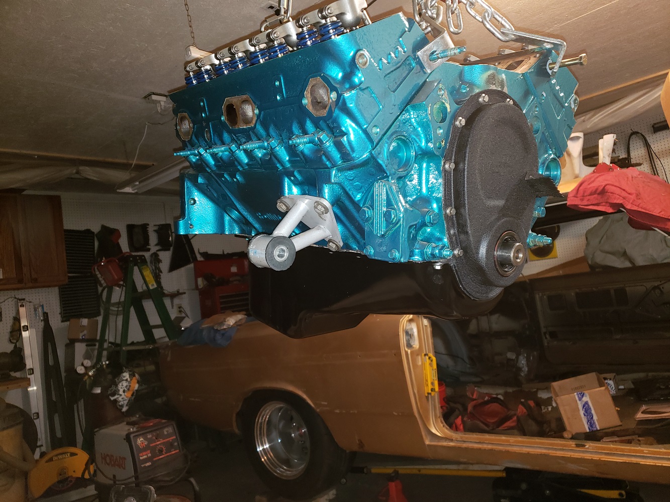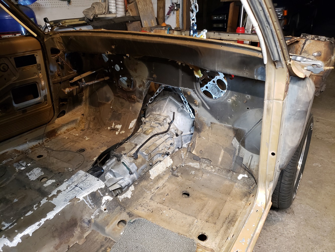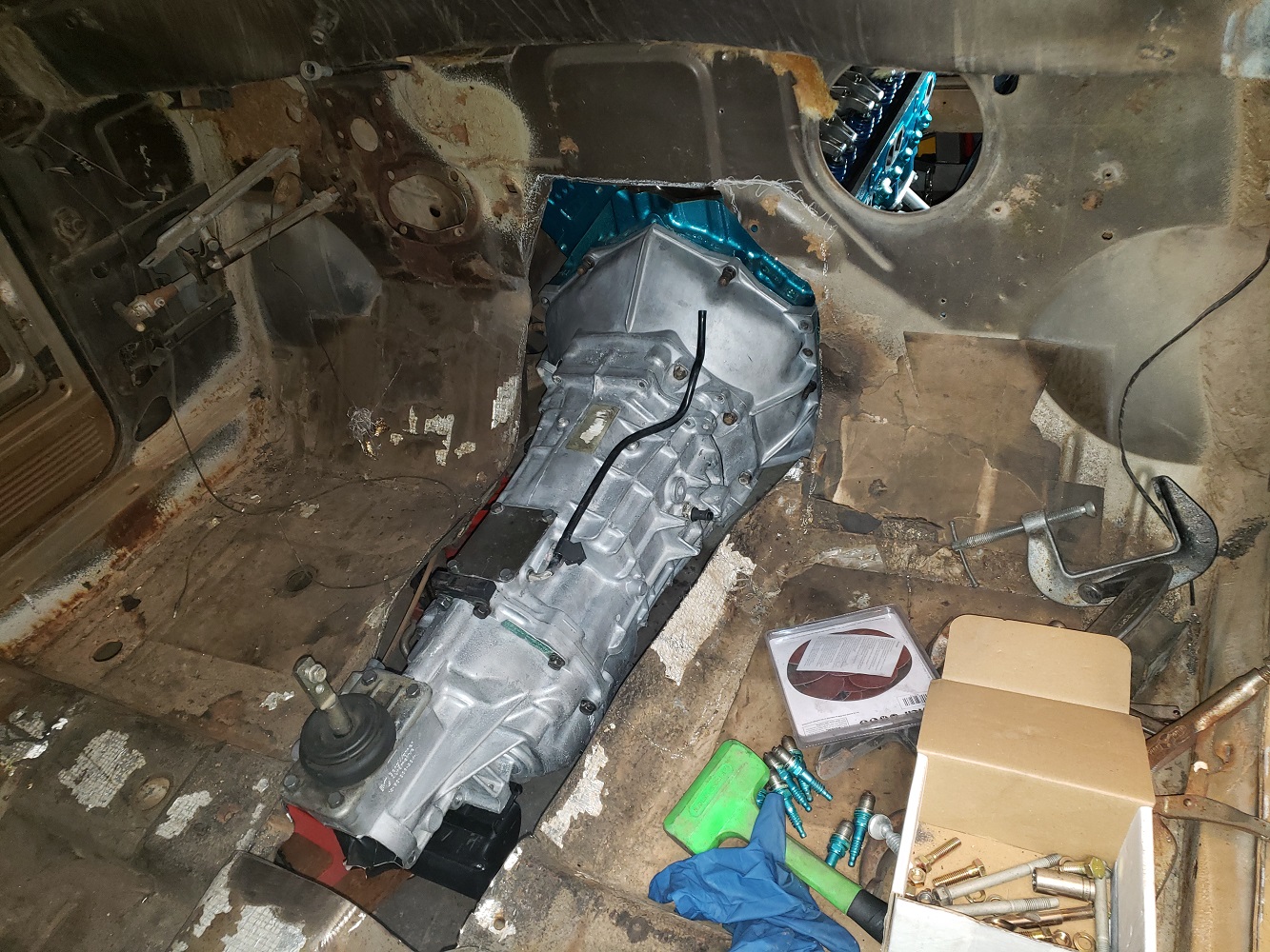 Getting the motor and trans in.