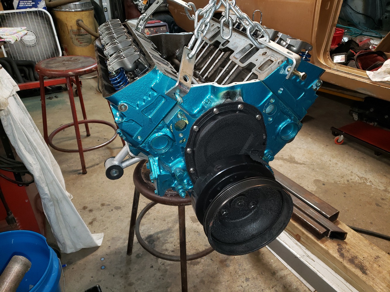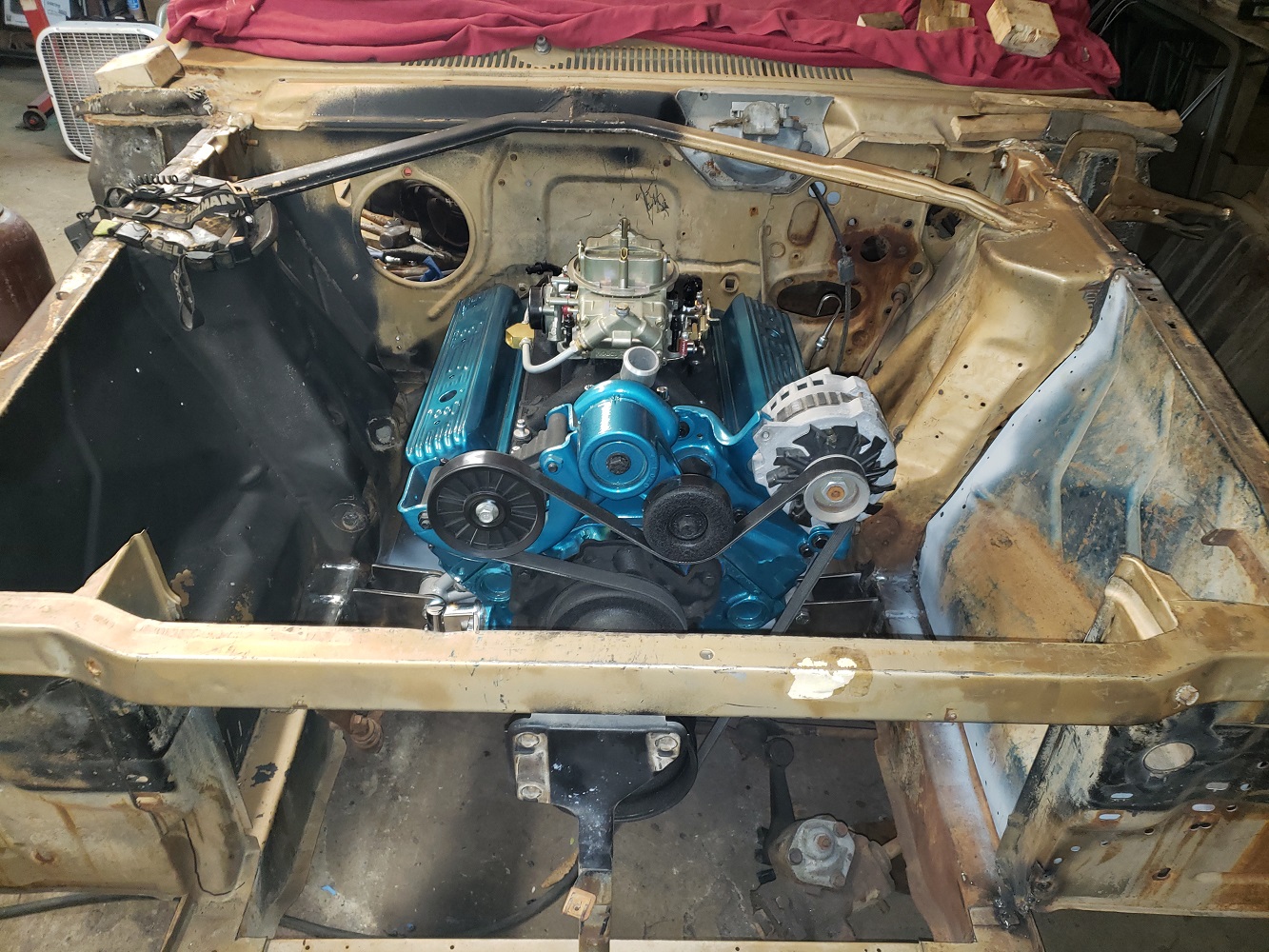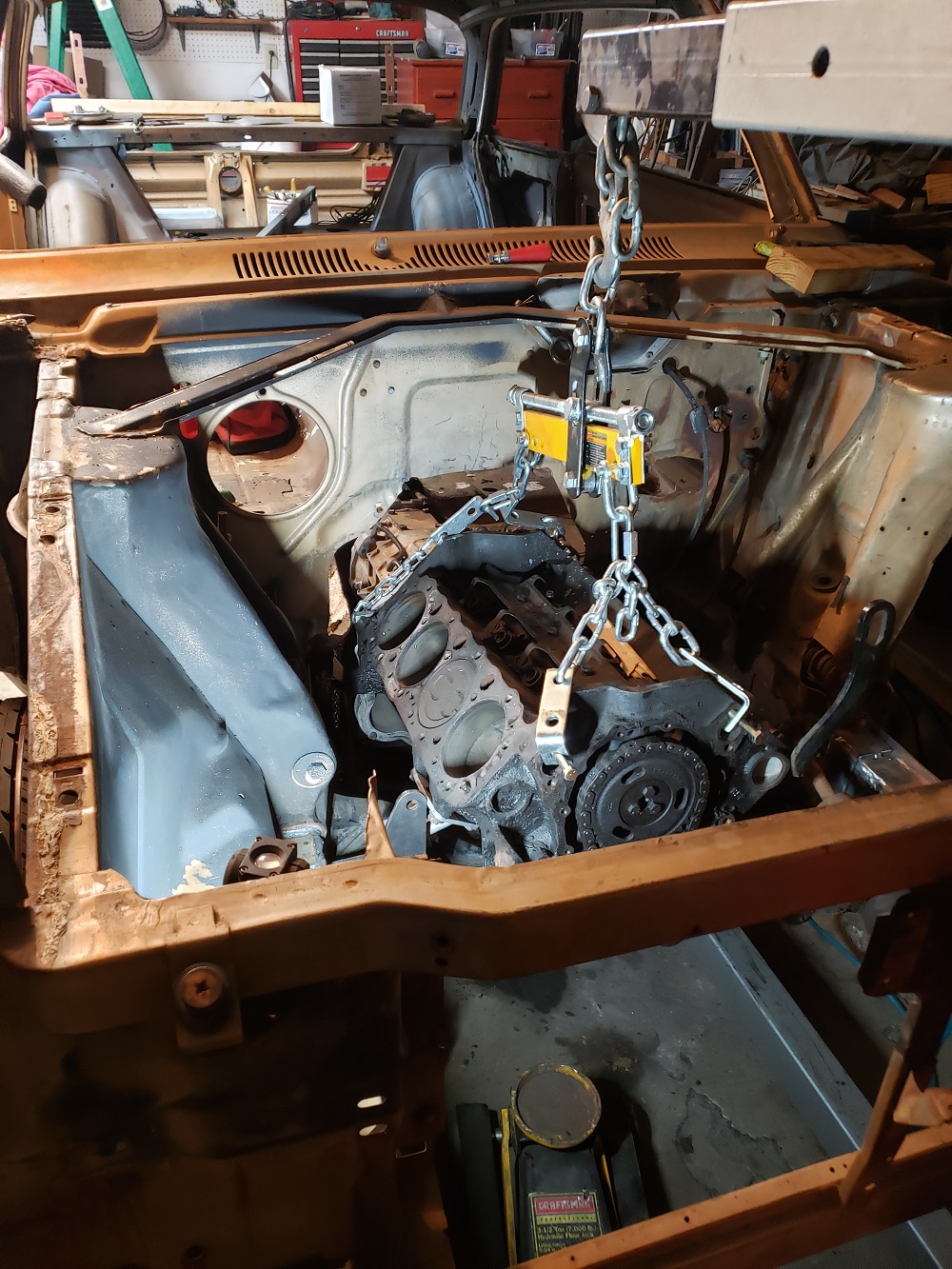 Getting the motor and trans in.