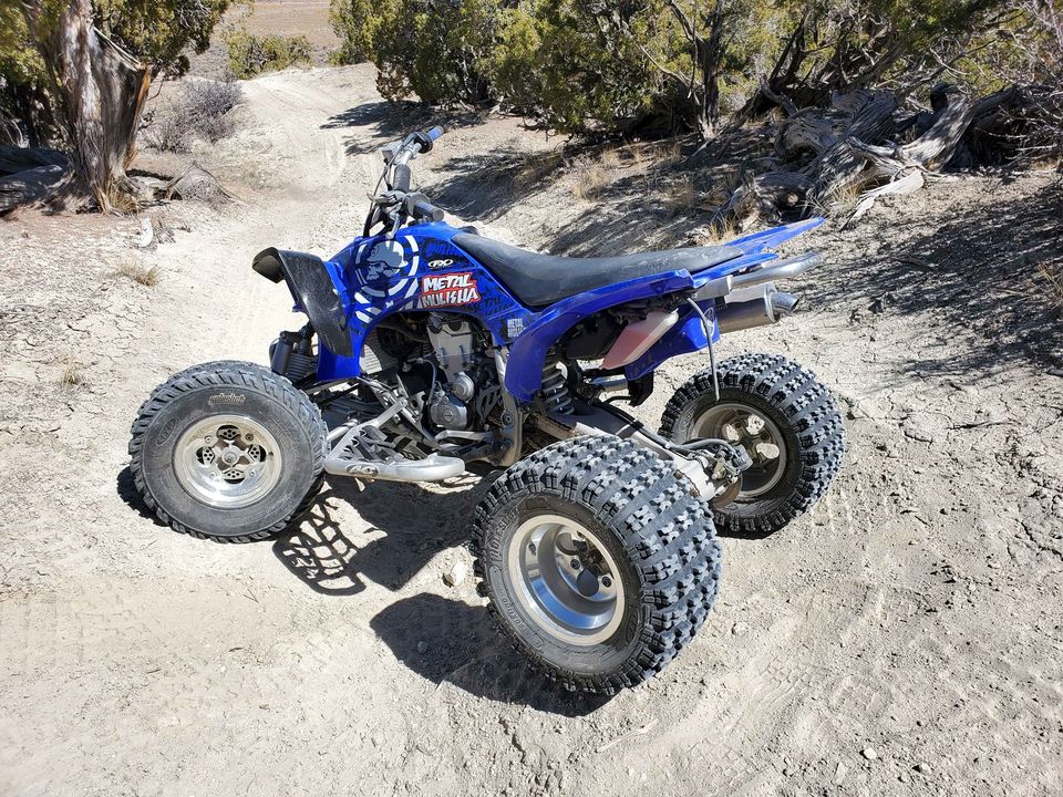 Here are the details on the YFZ450: I'm the 2nd owner, bought it from the first out of Utah. Dirt bike style throttle, meaning twist the handlebar, no thumb throttle. Jetted for elevation (I ride around 6,00-8,000ft.ft), have other Dynojet screws to go with it if the buyer is in lower areas. Fuel idle screw has been replaced with a style that's easier to adjust, so no need to use a magnet and drill bit to adjust the idle. Aftermarket air intake, curtis sparks exhaust Nerf bars. Runs, fast, loud. Polisport plastics, slighty worn, front fenders new. New battery. Have set of wheels with old tires to go with it. Perfect to swap to paddles if that's your thing. Will also throw in some LED pod lights I never wired in for headlights. CLEAN CLEAR COLORADO TITLE