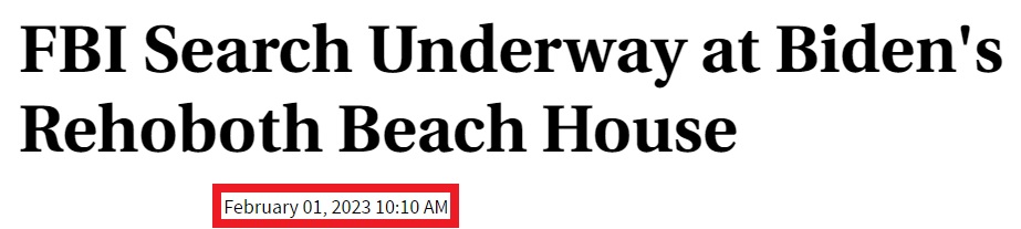 | quote | The FBI searched President Biden's home in Rehoboth, Del. on Wednesday as part of its investigation into classified documents found among his personal files, Biden's lawyer said in a statement.