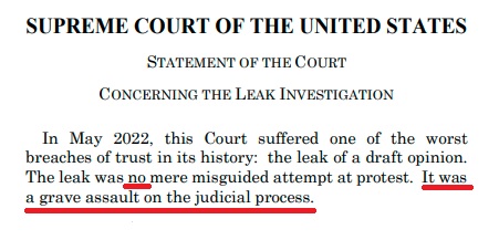 Not even the "STATEMENT OF THE COURT CONCERNING THE LEAK INVESTIGATION" said any such thing.