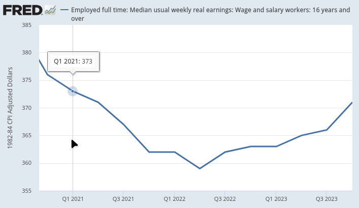 Will you look at that. Wages are actually below where they were on day 1 that Biden took office. I wonder why anyone would want to hide that...