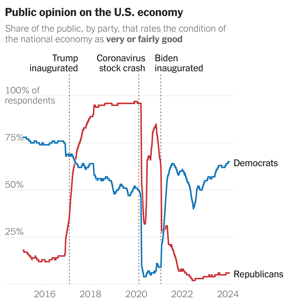 The number one reason why republicans have a negative opinion of the economy is because Biden is President. |