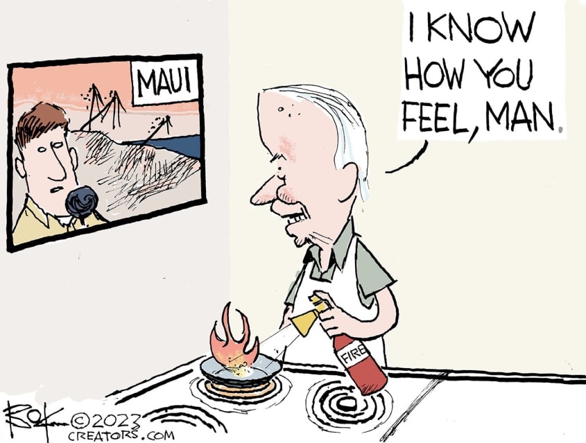 It also underscores the inanity—the unthinking mindlessness—of this string of cartoons that have appeared on this forum, all hyping up the nonsensical idea that President Biden is oblivious to the dimensions of this fire disaster on Maui, or disinclined to do anything about it.