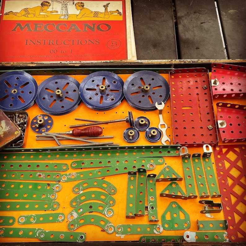 My dad gave me his old Meccano set from when he was a kid, and I integrated it in with my OWN Meccano kit from the 1980s, and I absolutely loved it. I used to build all kinds of stuff. Mine came with a C-battery powered motor, so I could actually build a functioning crane with a switch. I loved Meccano.
