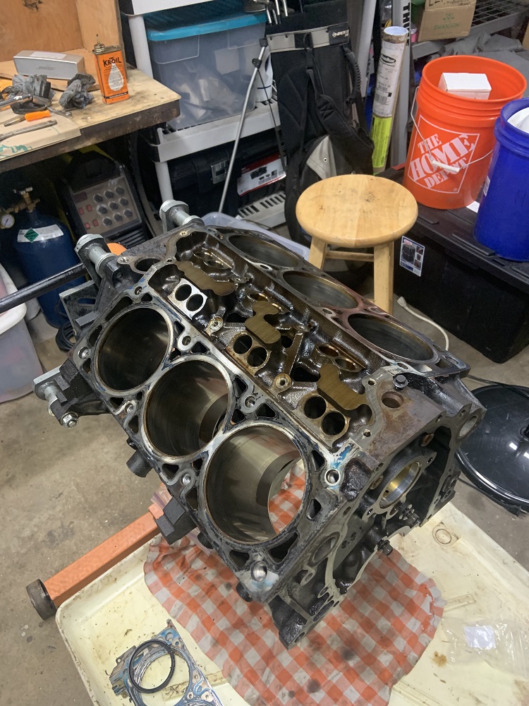 Here is the bare block. I am going to put it in a big tub full of degreaser from the dollar store to clean it up. I may bring it to the machine shop for a hot tanking depending on the cost.