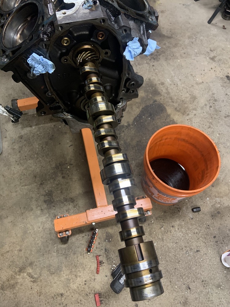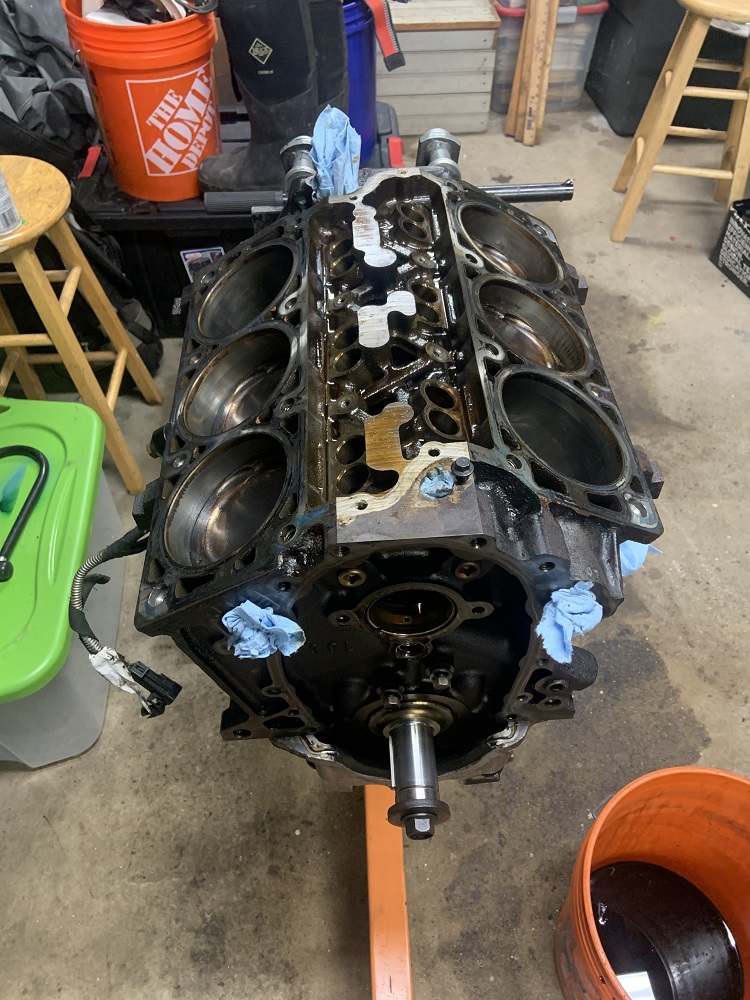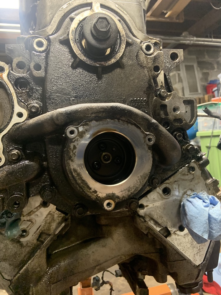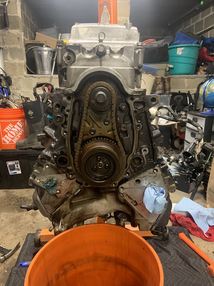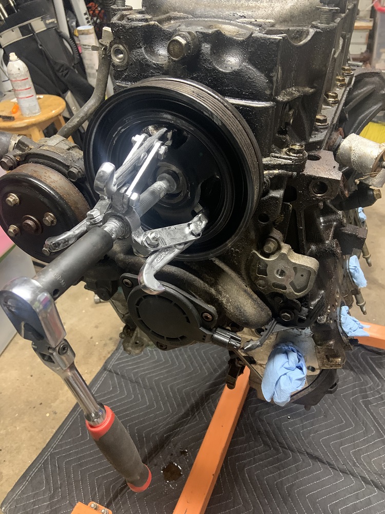 Going to get a new crank puller tomorrow as I guess I threw mine out, the threads were a little messed up and I must have gotten sick of it. Then I can pull the timing cover and oil pan off and check out the bottom end.