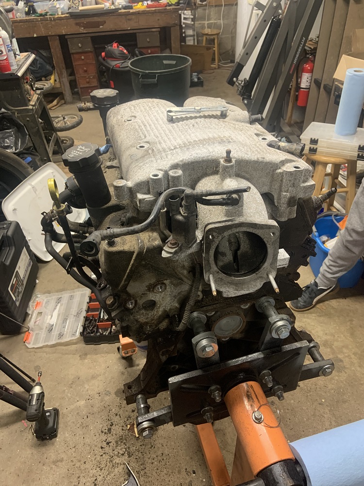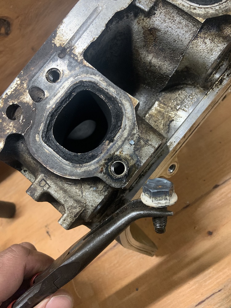 Motor stripped of bits and LZ4 intake in place. Nothing broke except 1 exhaust bolt, it spun with 0 resistance and the head came right off. The rest I took it slow and went in and out a little bit until they came out nice and easy. Plenty of stud is sticking out, I will screw a nut onto it and weld the nut to the broken bolt and it should come right out.