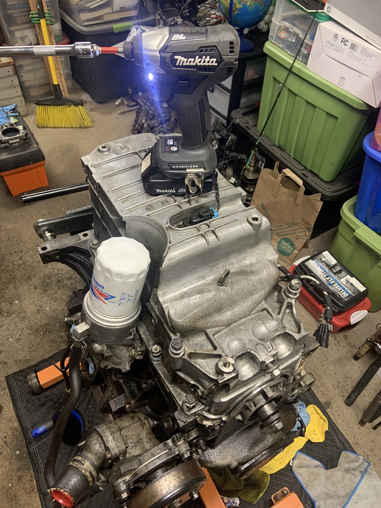Got a bunch done to the engine today, took off all the extra bits, labelled everything and organized all the fasteners. Spun the motor over by hand and the compression is great. I do want to get a starter and hook up a battery and compression test each cylinder before I possibly pull the heads.