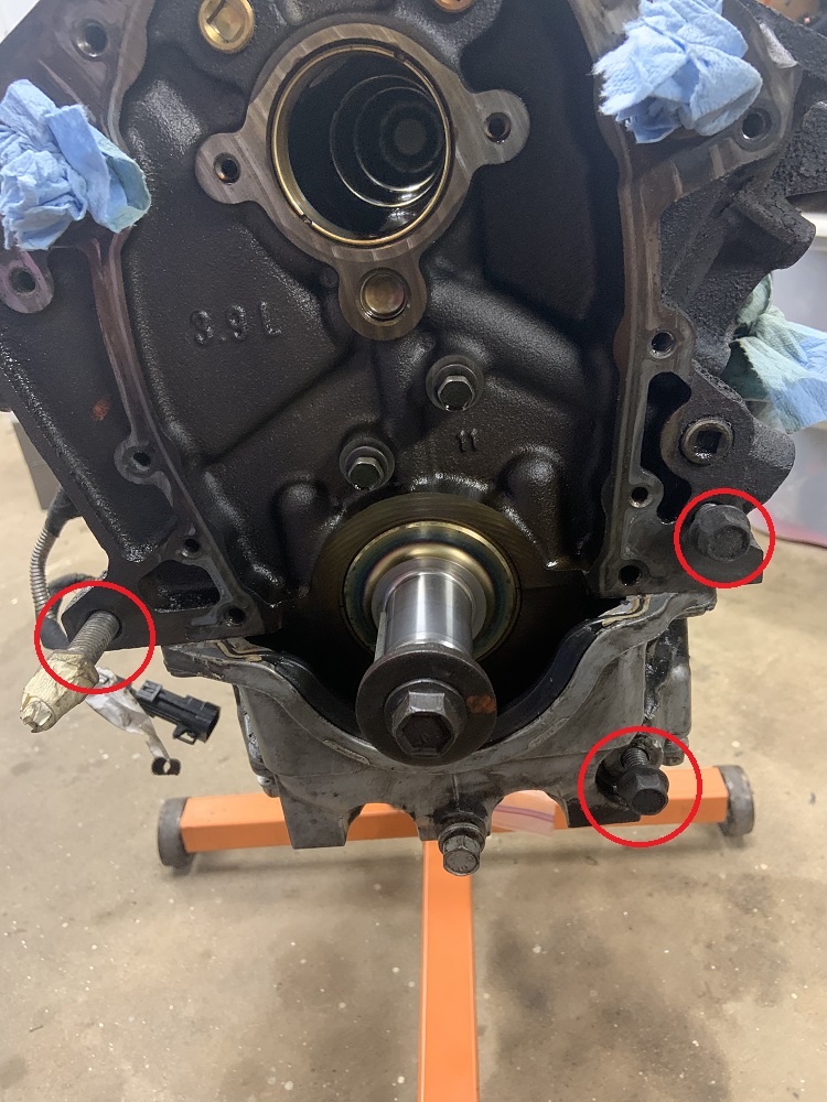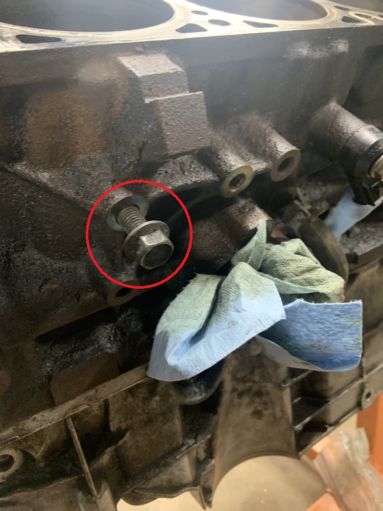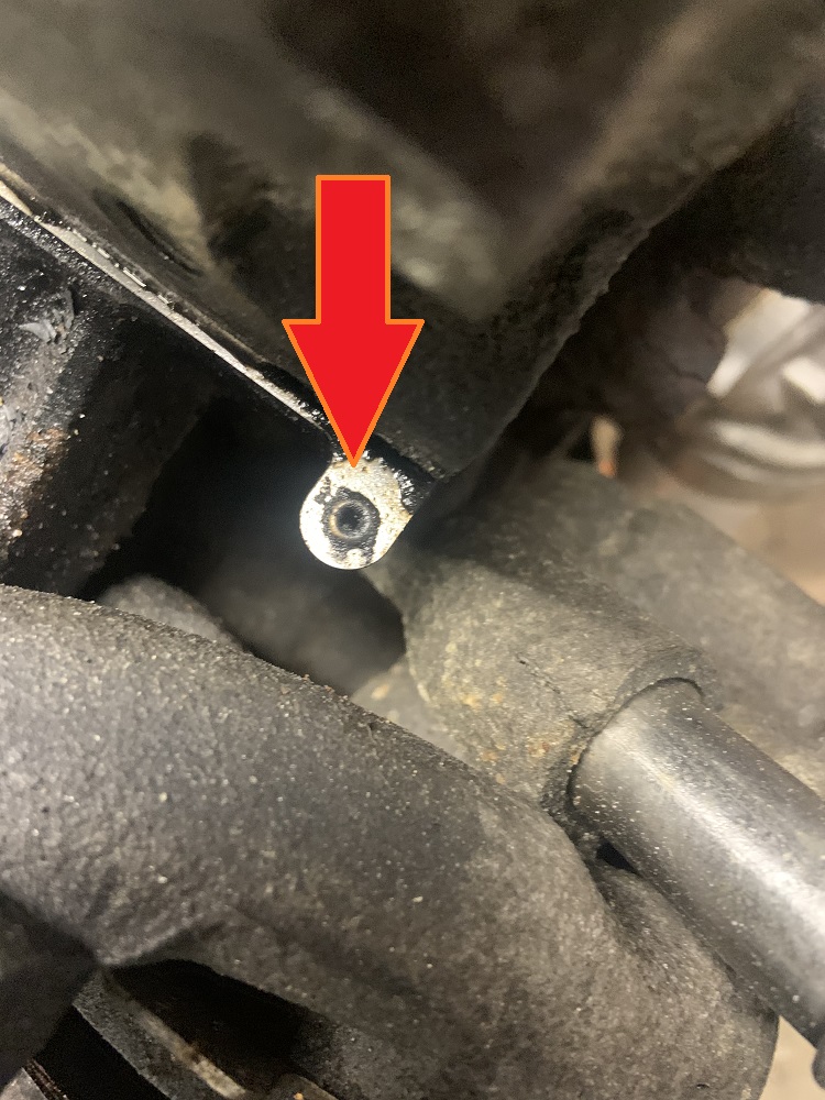 I may order some fresh bolts for these. Here is what the G6 engine mount looks like, and the two oil pan bolt holes I plan to attach to