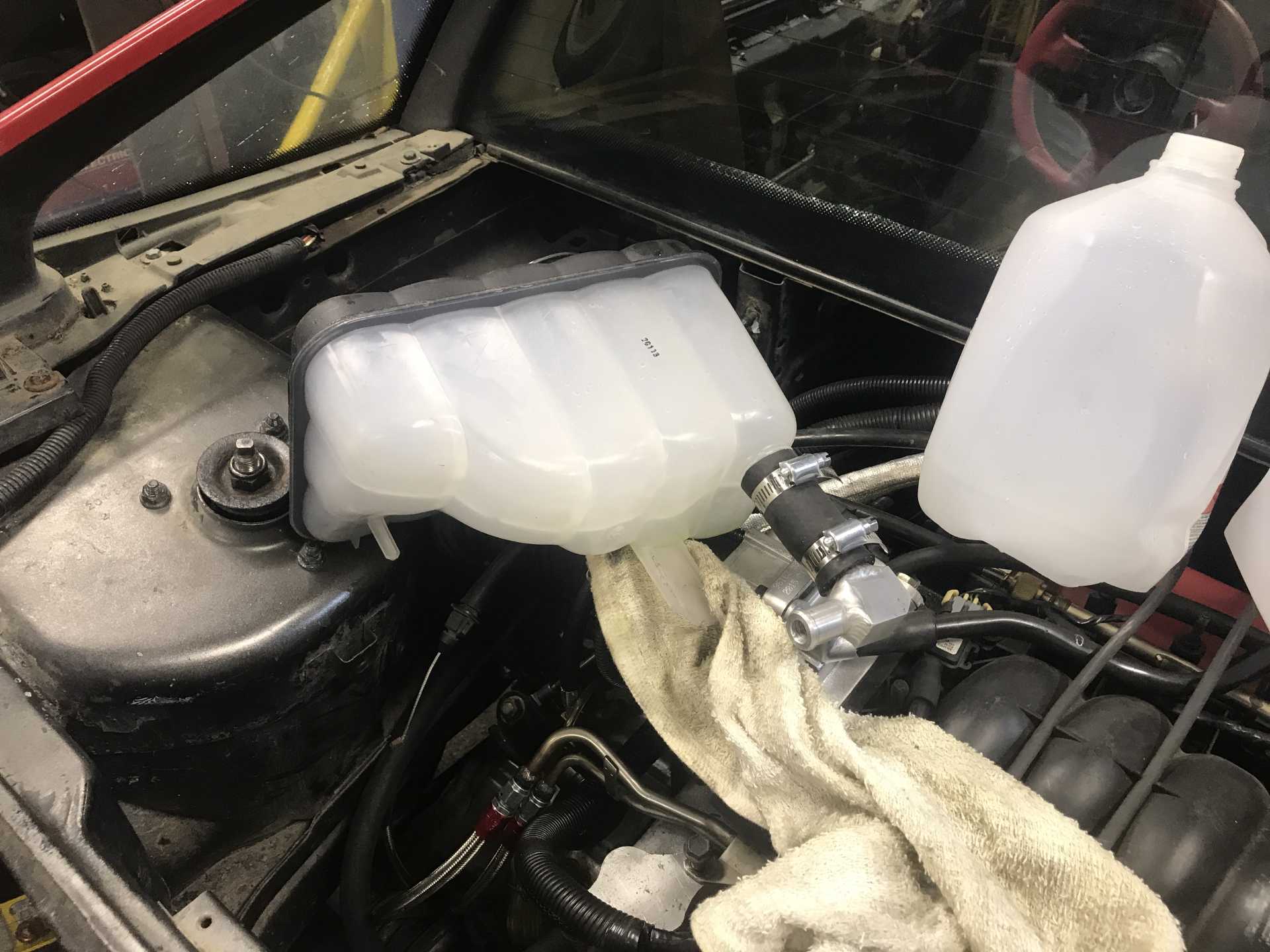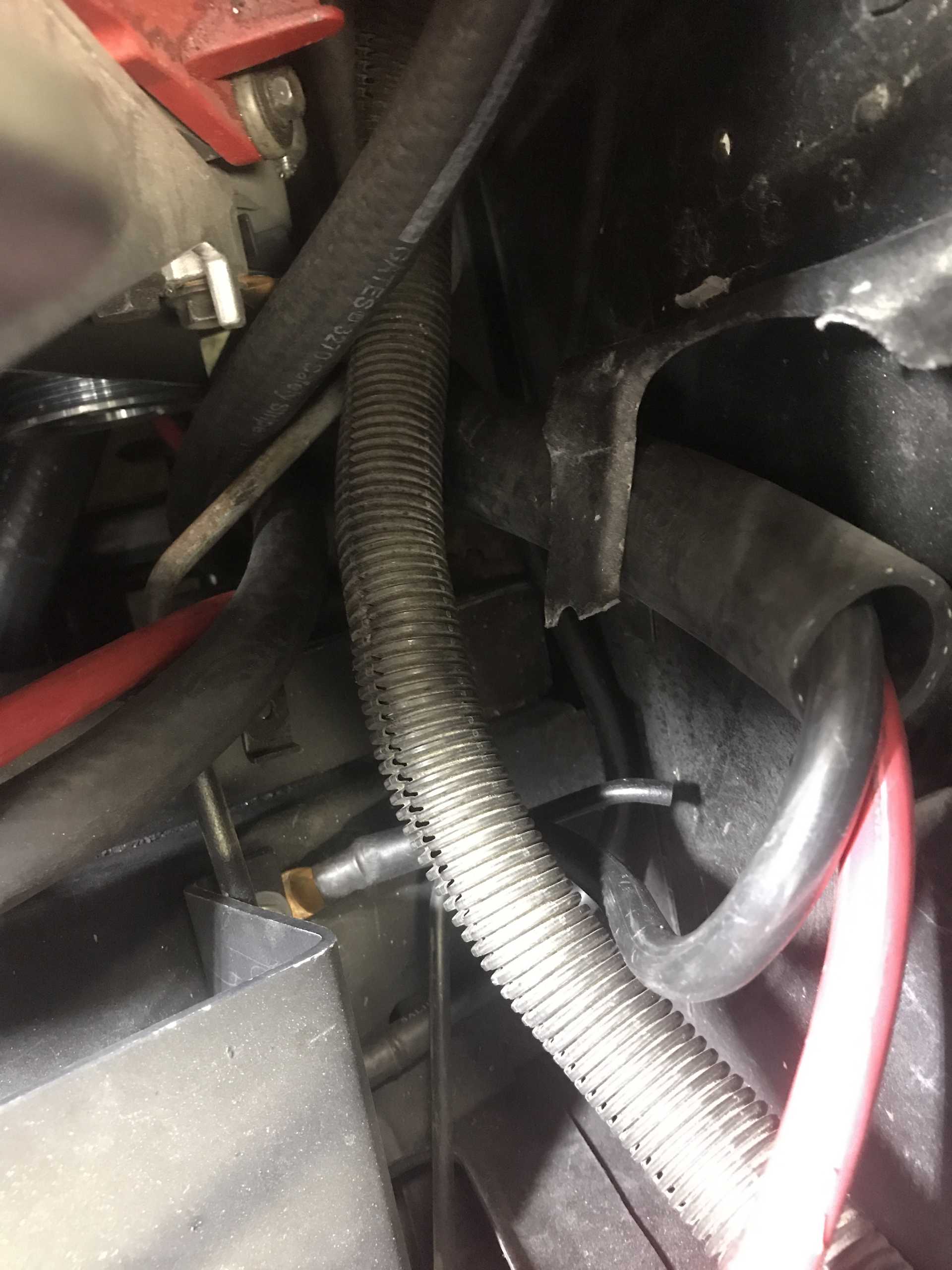 We mixed up some Preston’s yellow coolant, and found the first, and seemingly only leak. The bottom hose clamp on this bracket must’ve not been seated right. After cutting the tube back and tightening the clamps more, it doesn’t leak.