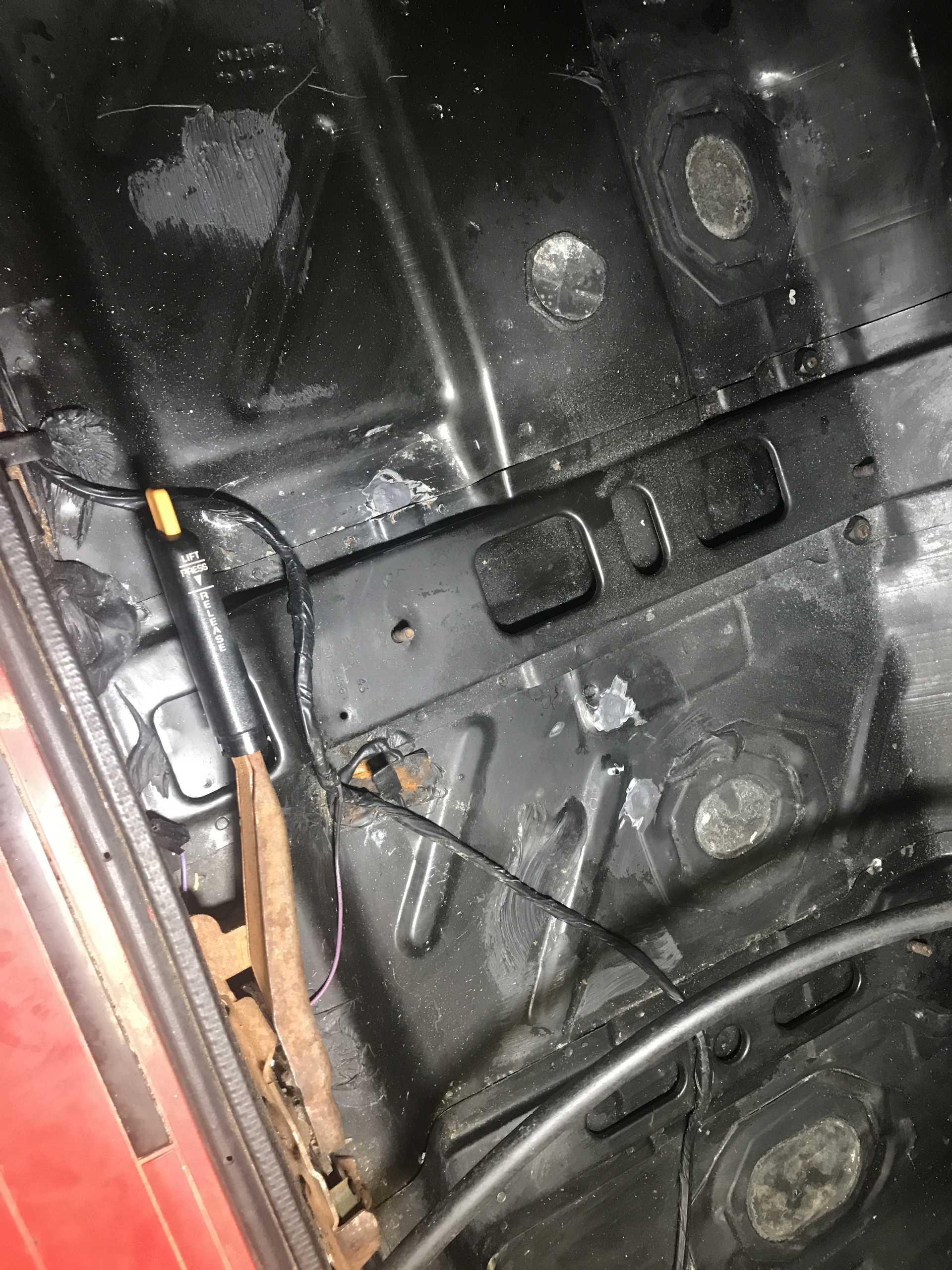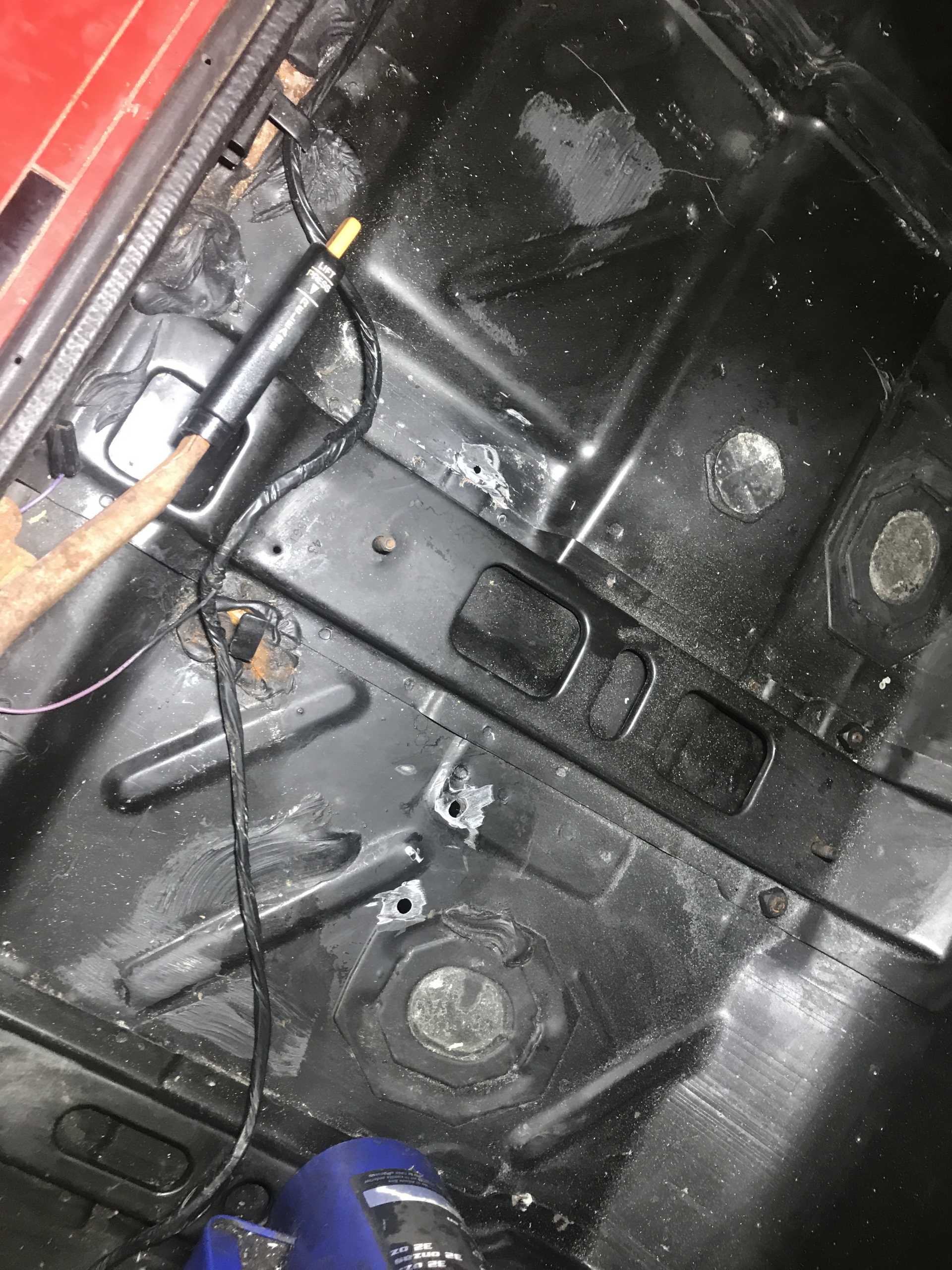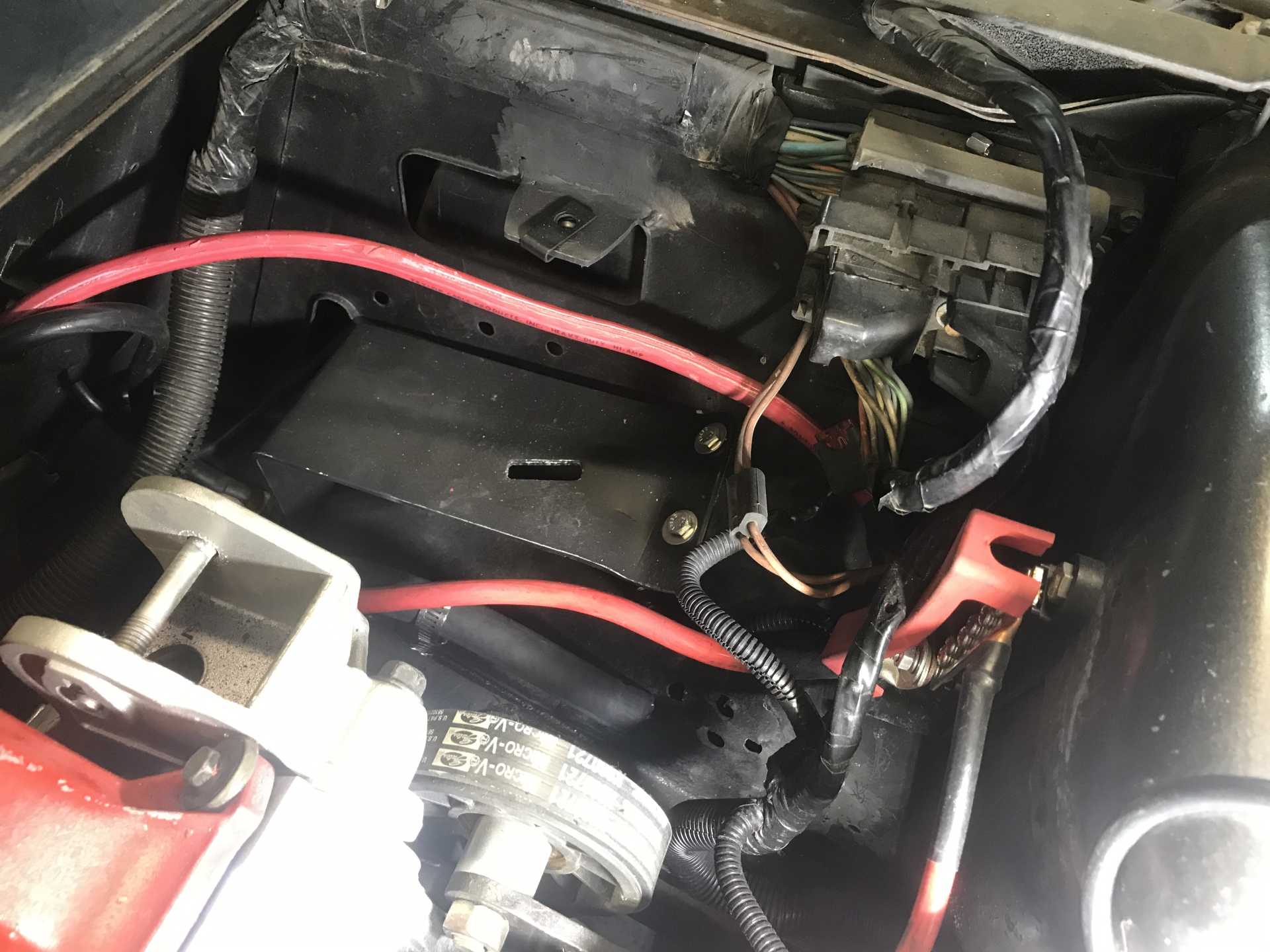 I plan on using better clamps to secure the cables down, but for now they are wedged behind this bracket(I’m assuming from the old battery tray) the PO cut up. There’s one ground from the block that goes to one bolt from the expansion tank bracket, and the main ground from the front goes to the other bolt.